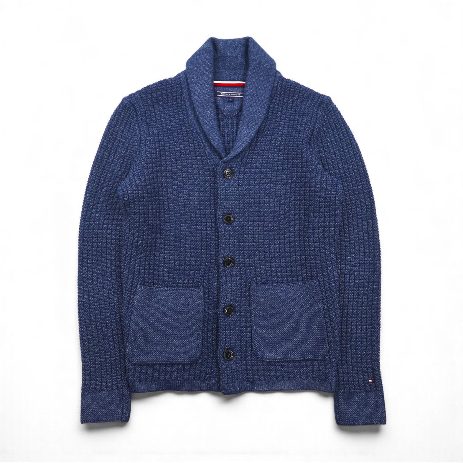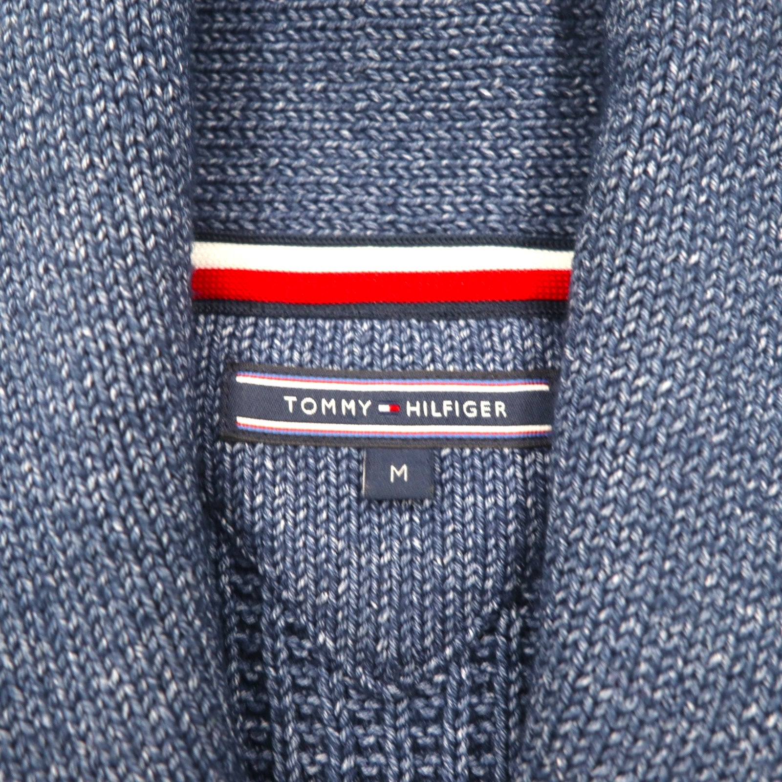 TOMMY HILFIGER Shawl Collar Waffle Knit Cardigan, Size M, Navy, Low Gauge, Patch Pockets