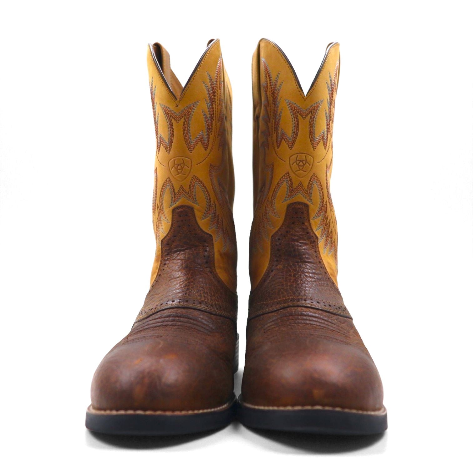 ARIAT Heritage Stockman Cowboy Western Boots, Size 26cm, Two-Tone, Goodyear Welt Construction, Carved Stitching, Embroidery, Roper Boots, 10002247