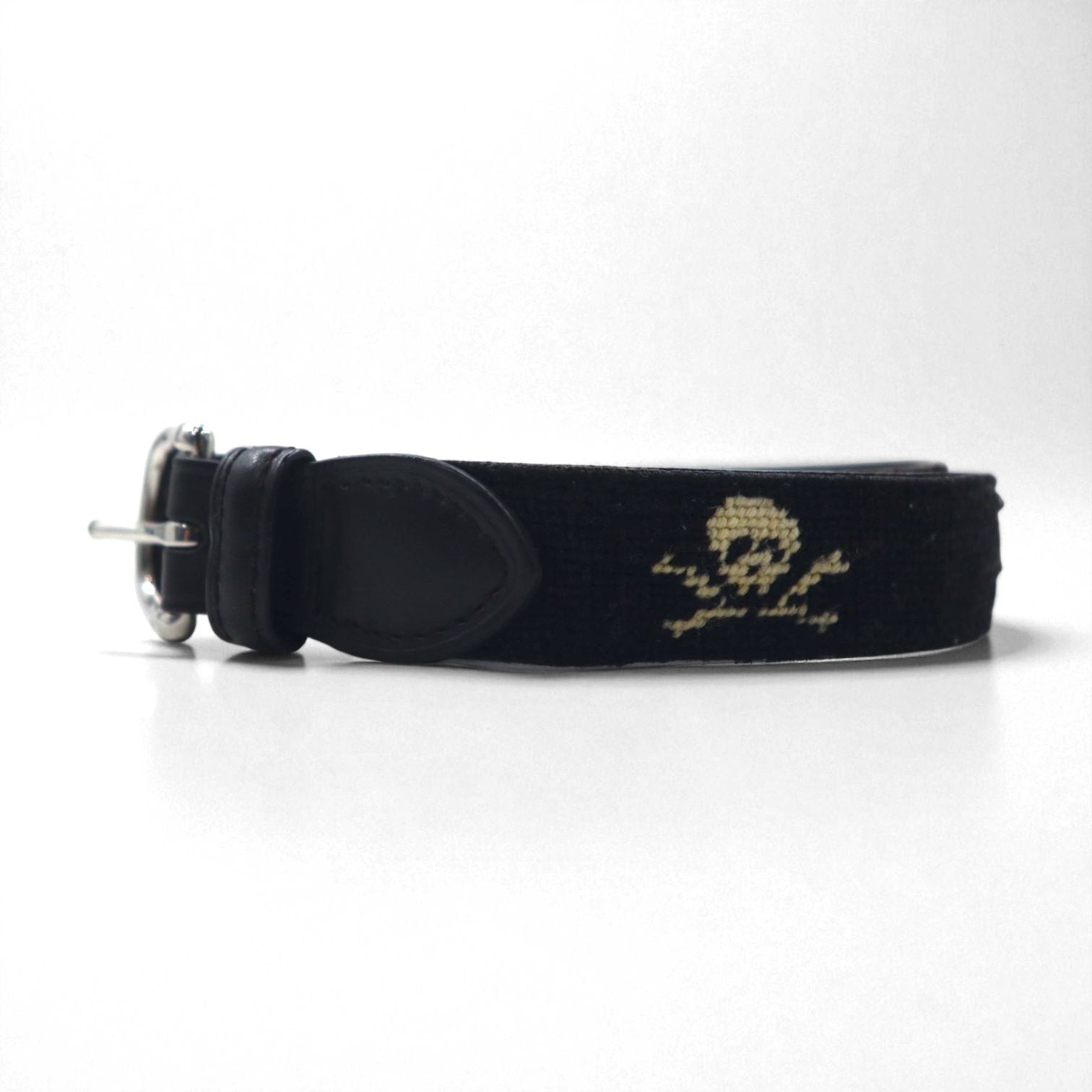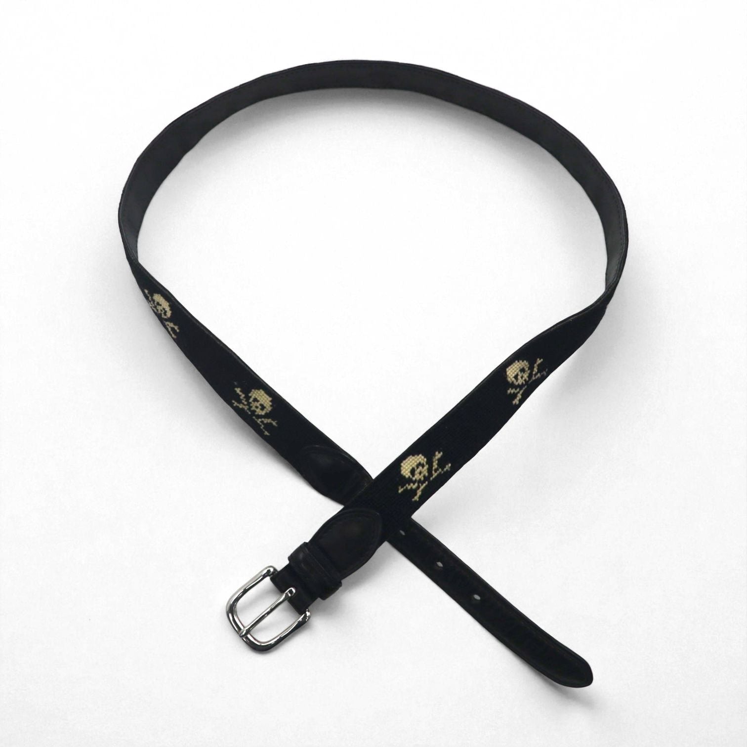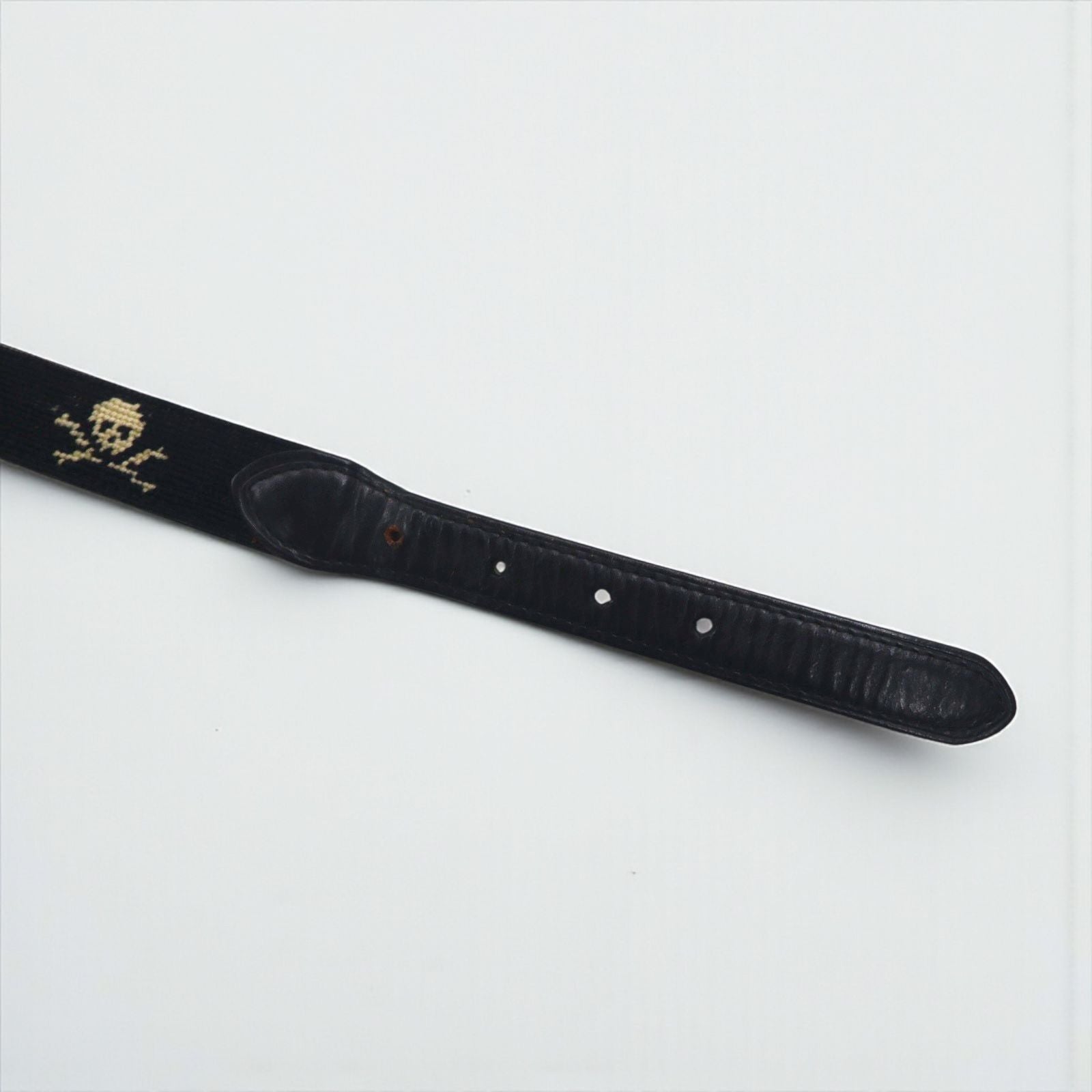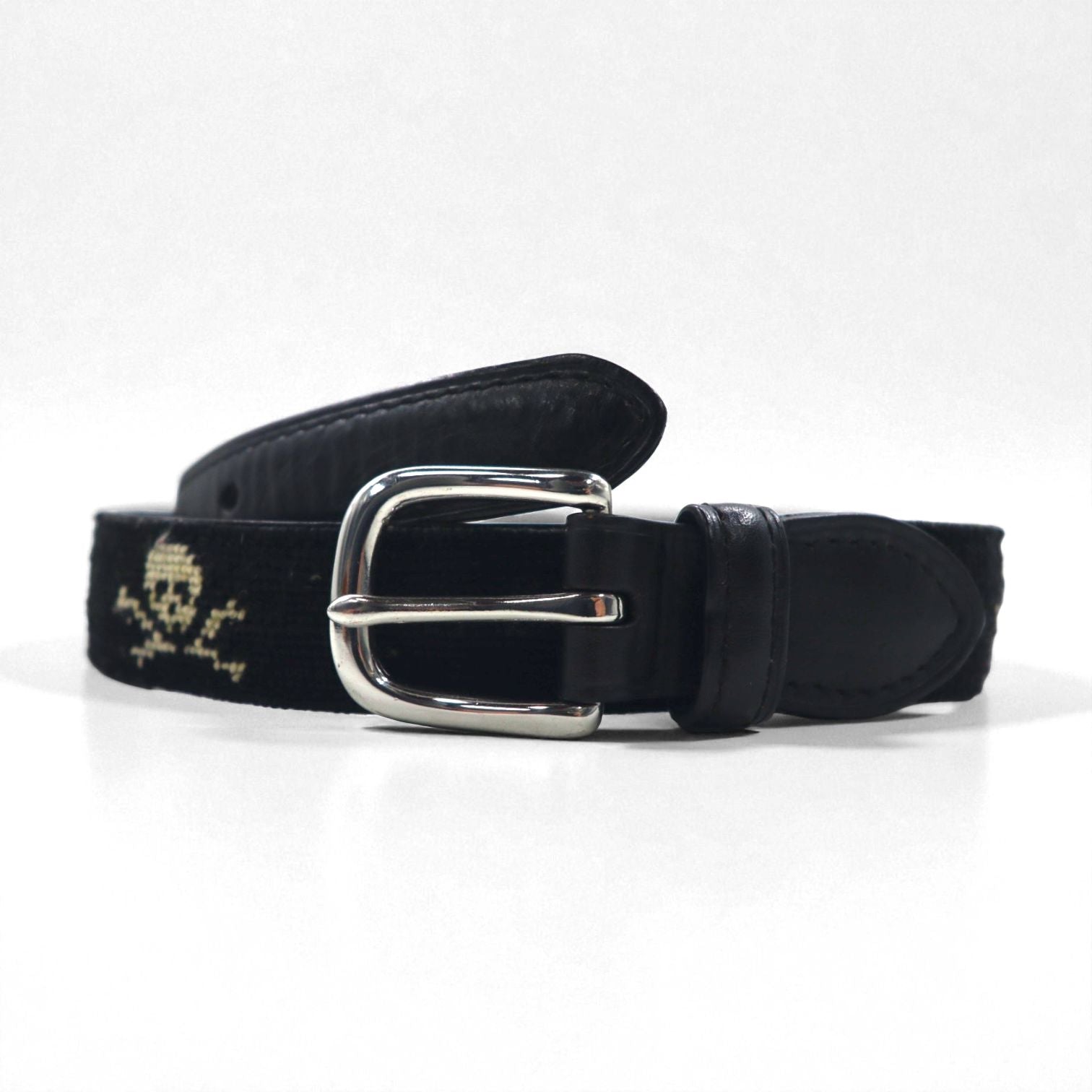 RUGBY Ralph Lauren skull leather belt in black wool with a silver buckle