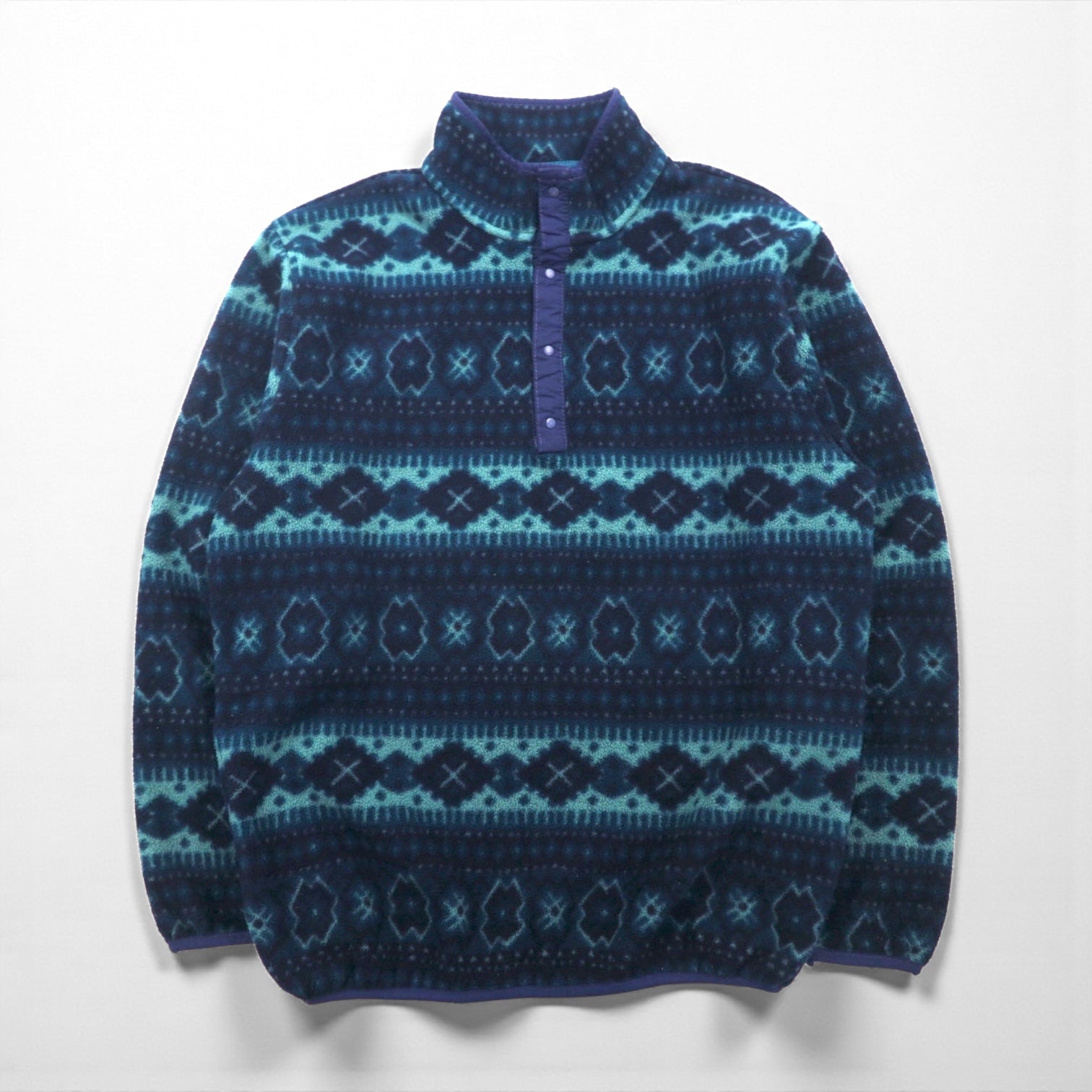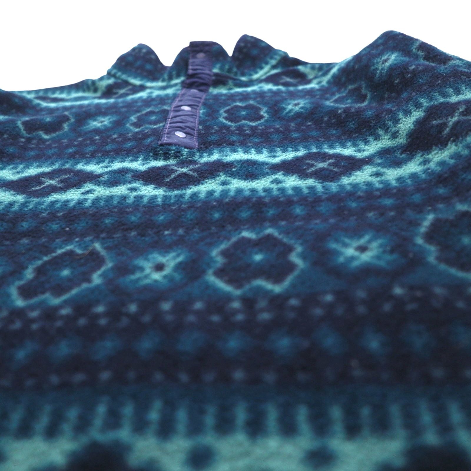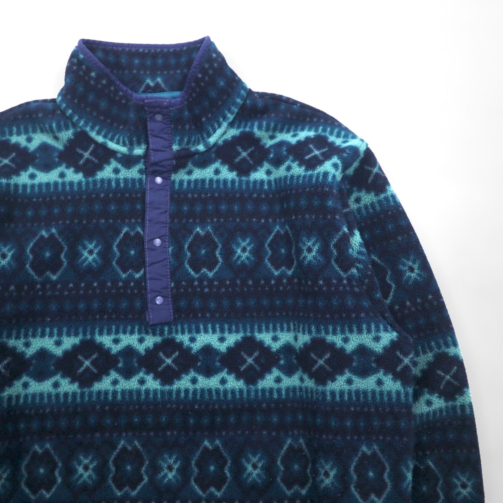 L.L.Bean 90年代 ハーフスナップ フリースジャケット L ネイビー スナップボタン 総柄 ノルディック