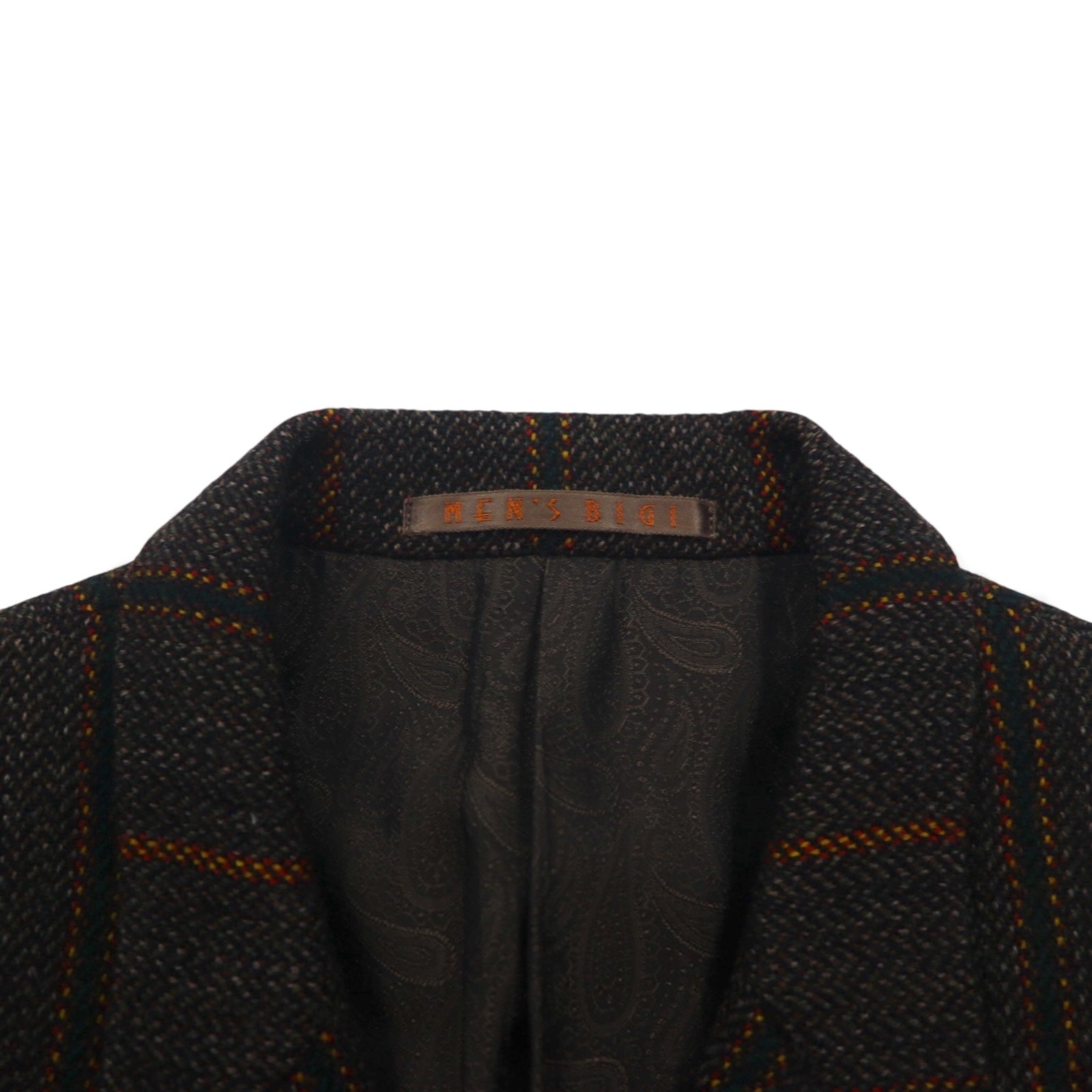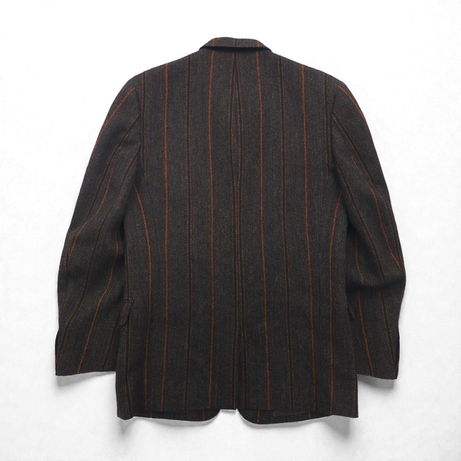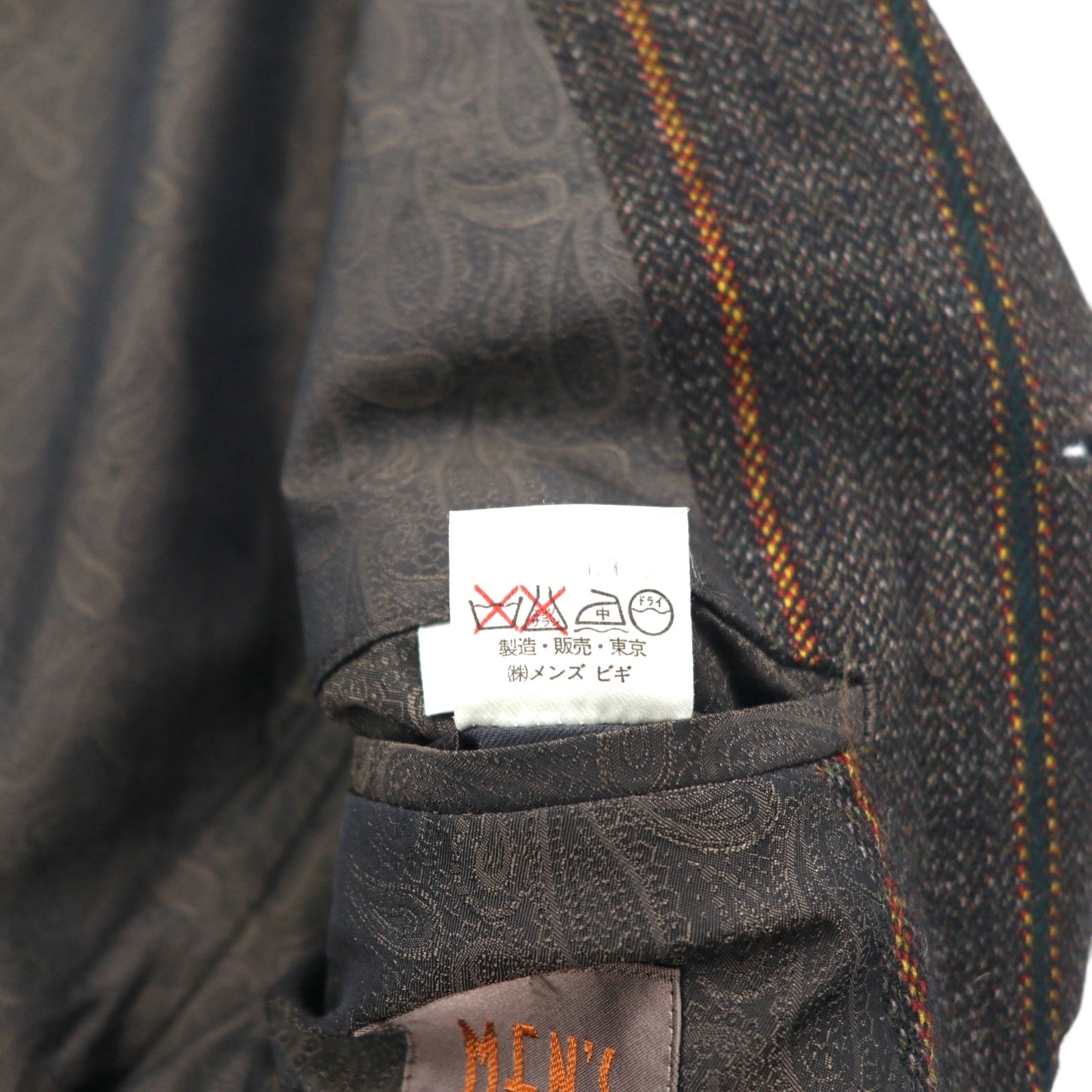 MEN'S BIGI 80s Vintage Blazer ツイード テーラードジャケット M ブラウン ストライプ ウール 裏地 ペイズリー柄 80年代