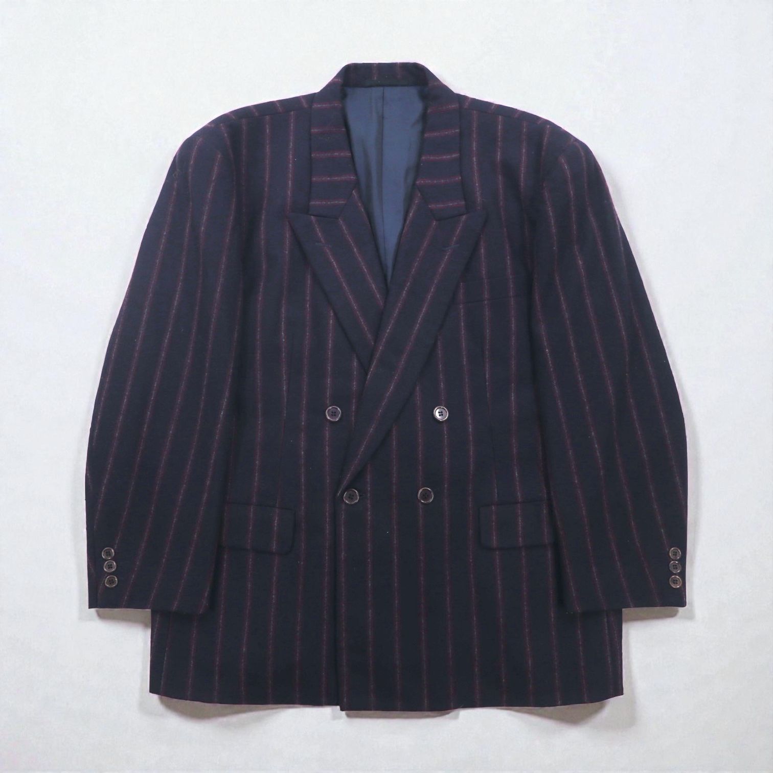 TAKEO KIKUCHI 90年代 ダブル ブレザー テーラードジャケット M ネイビー ストライプ ウール AFTER WORKS