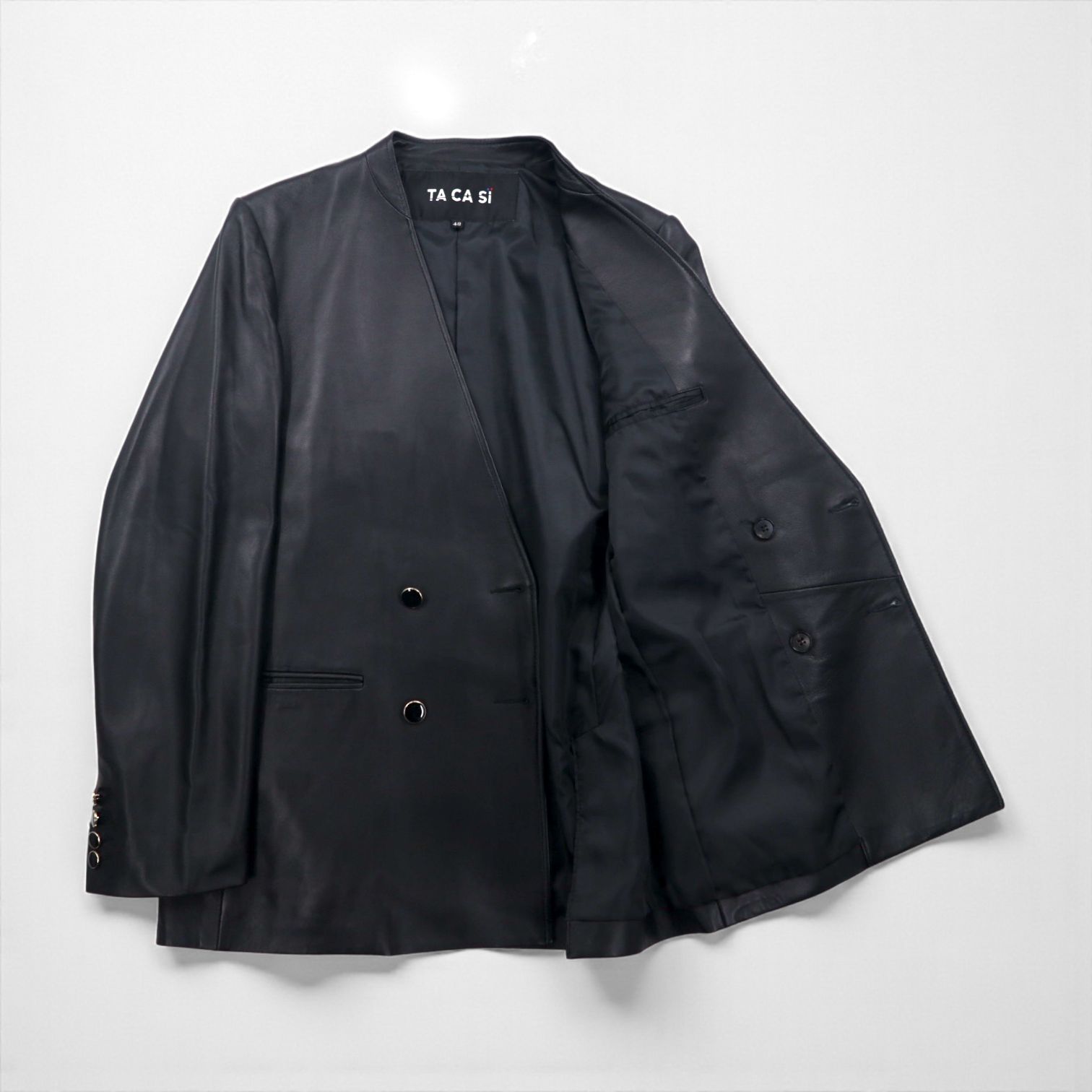 TA CA SI International Gallery BEAMS ラムレザー ダブルブレスト ジャケット M ノーカラー 羊革 23-16-0719-262
