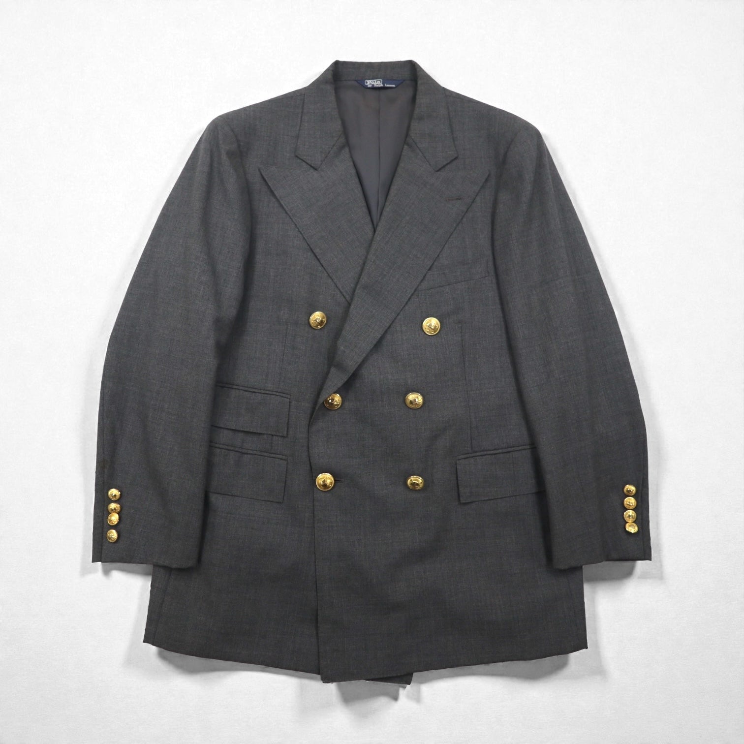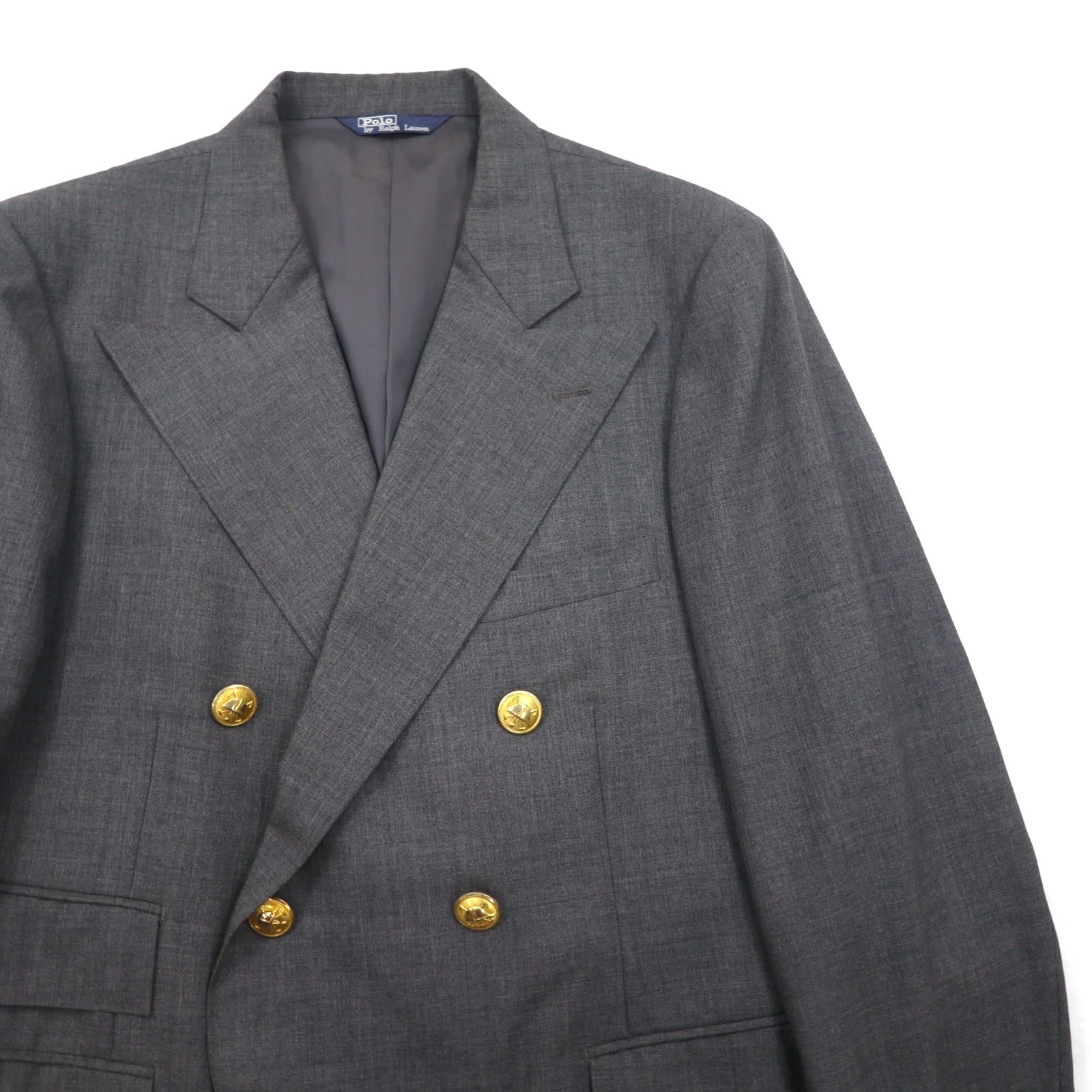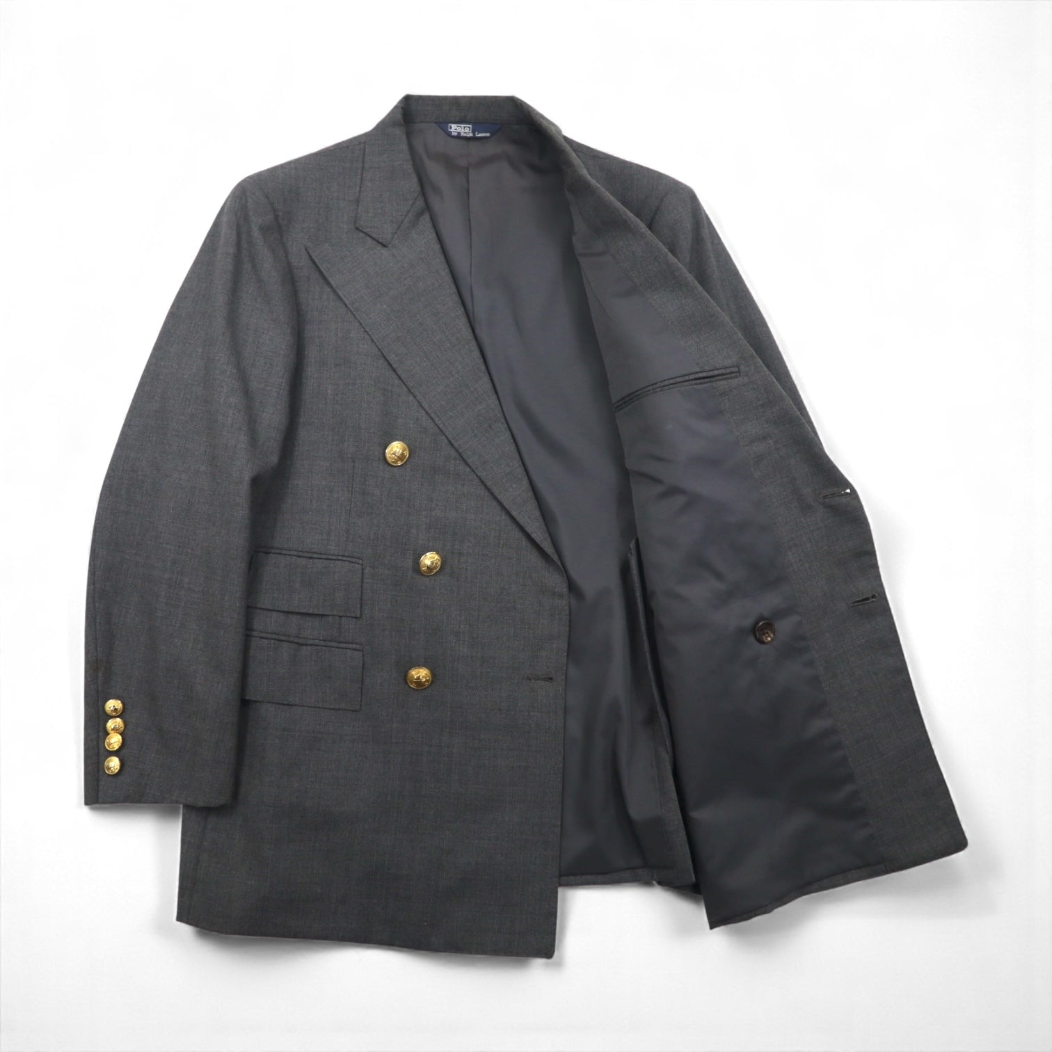 Polo Ralph Lauren 80年代 日本製 ピークドラペル ダブルブレスト セットアップ スーツ M グレー 金ボタン