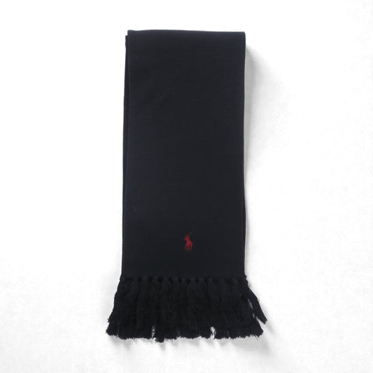 Polo Ralph Lauren カレッジロゴ フリンジ マフラー ストール ブラック ポニー ロゴ 刺繡 POLO 1967