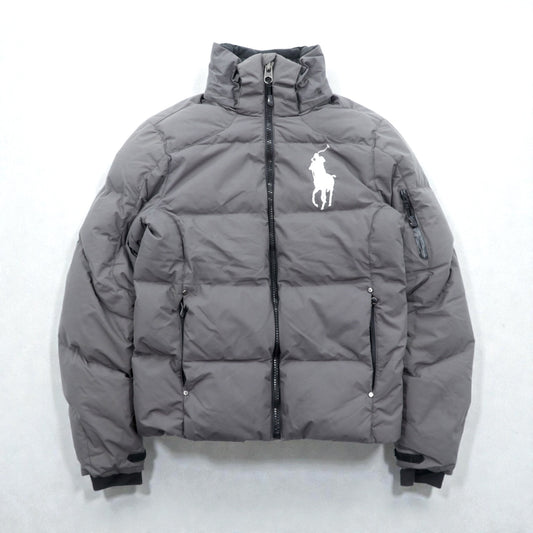 Polo Ralph Lauren ビッグポニー 刺繍 ダウンジャケット XS グレー フード着脱 ドローコード スタンドカラー