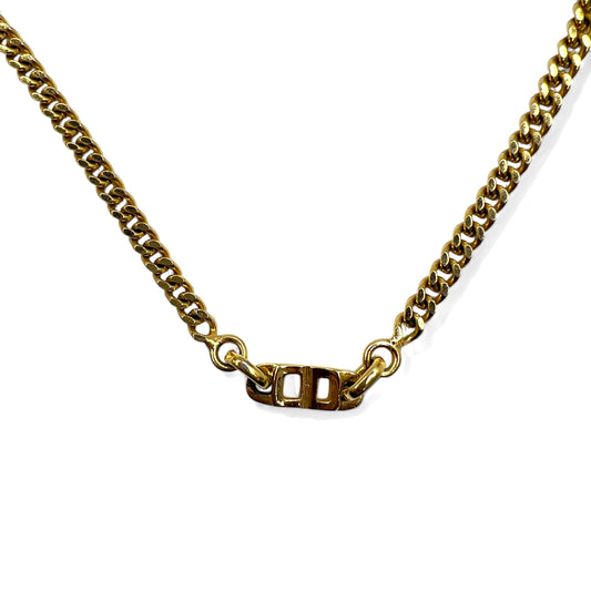Christian Dior Curb Chain Choker Necklace in Gold with CD Logo and Metal
