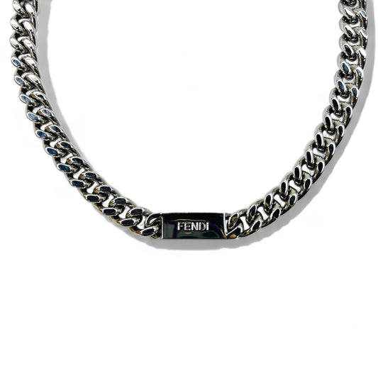 FENDI Metal Chain Necklace Silver Kihei Baguette Link MP4722 Made in Italy