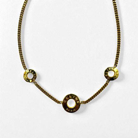 CELINE Vintage Kihei Chain Necklace Choker Gold Triple Circle Logo LE Engraved Made in Italy