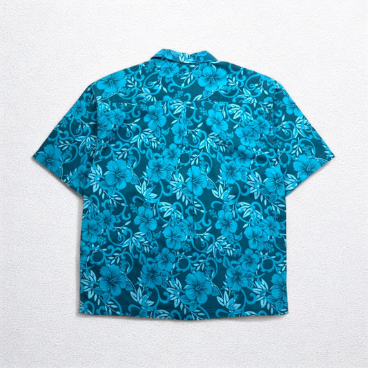 90s KING SIZE Open Collar Aloha Shirt 2XL Blue Rayon Floral Pattern Big Size