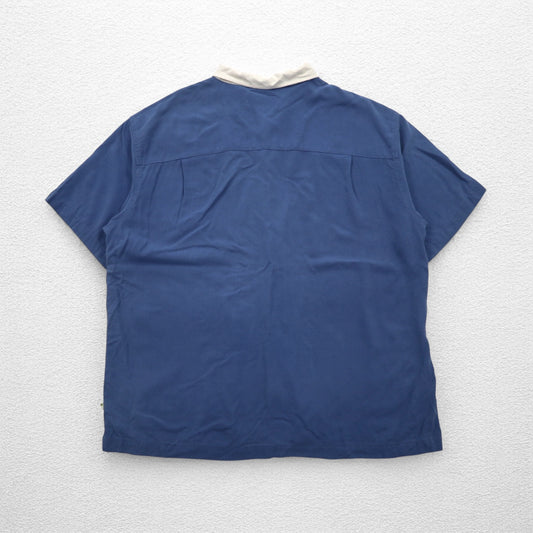 TOMMY HILFIGER 90s Open Collar Aloha Shirt XL Navy Rayon Floral Print Big Size