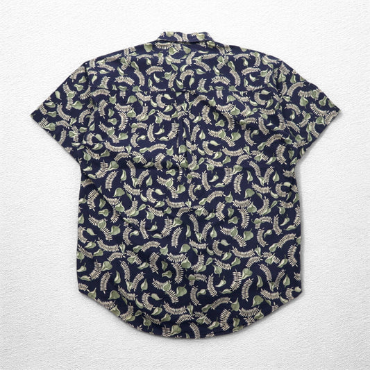 CHAPS RALPH LAUREN 90s Short Sleeve Button Down Shirt L Navy All-over Leaf Botanical Chest Pocket