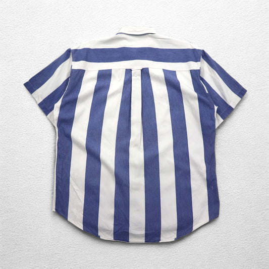 CHAPS RALPH LAUREN 90s Short Sleeve Denim Button Down Shirt L Blue White Striped Cotton