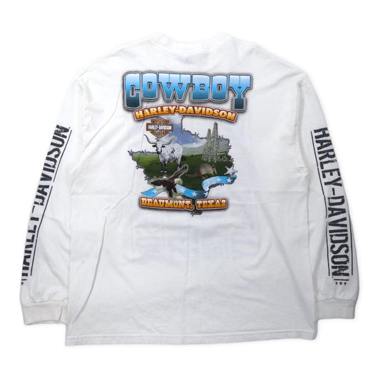 HARLEY DAVIDSON Logo Print Long Sleeve T-Shirt Long T-shirt 2XL White Cotton Double Sided Print Sleeve Logo BEAUMONT, TEXAS Big Size Made in Mexico