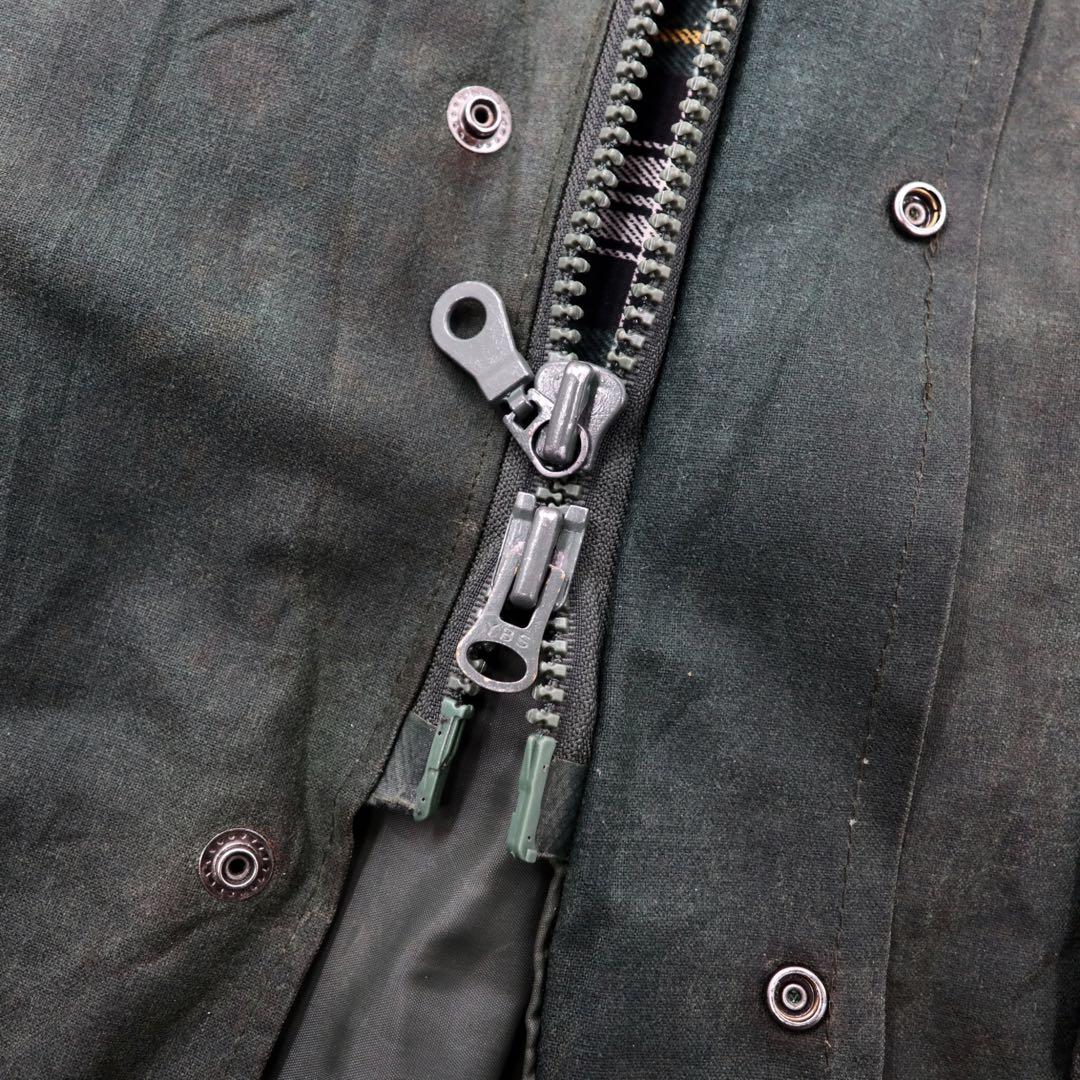 Made in England WAX WORKS Oiled Jacket Coat XL Khaki Cotton Collar Corduroy Double Zip