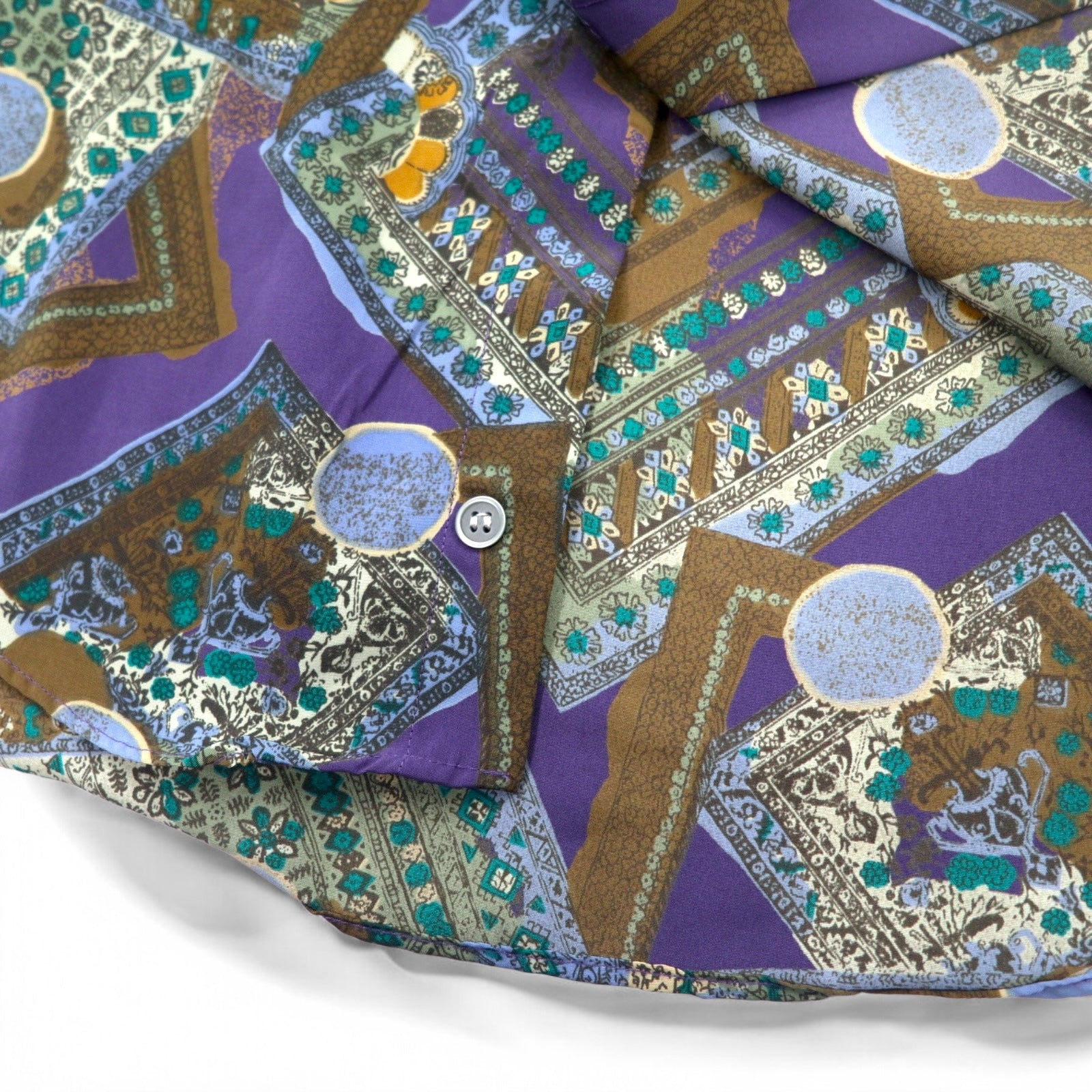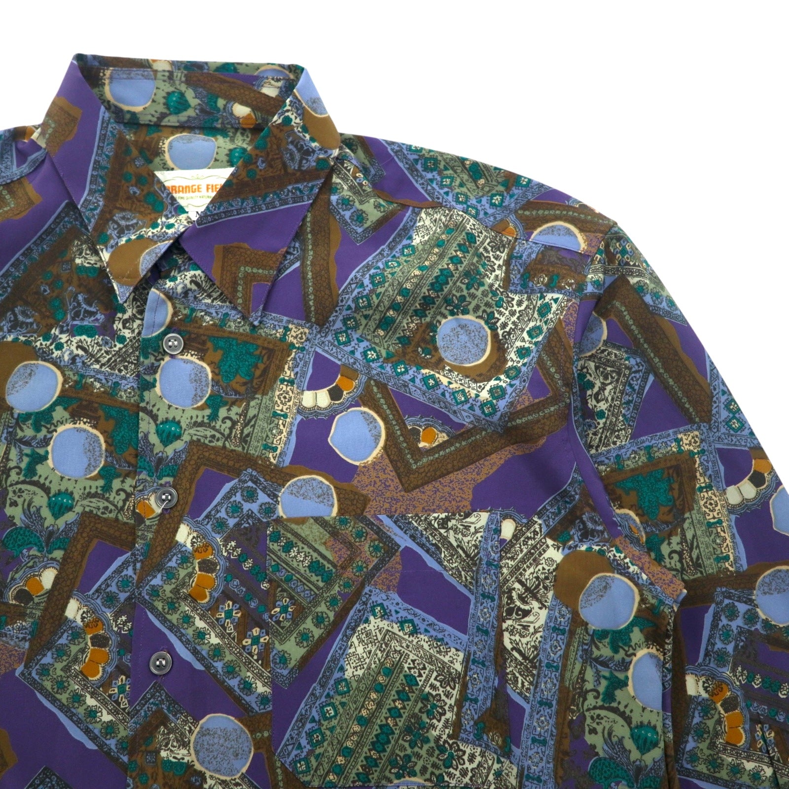 Vintage 90s Retro Geometric Pattern Shirt ORANGE FIELD All-over Print Poly Shirt M Purple Polyester