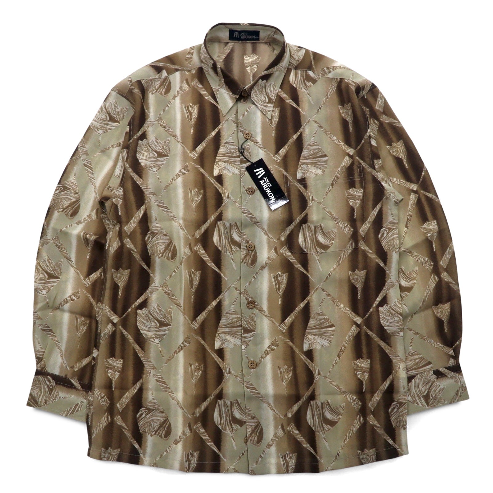 Vintage 90s Japan Made Retro Shirt JOLLY ARUKON All-over Print Polyester Shirt M Brown Unused