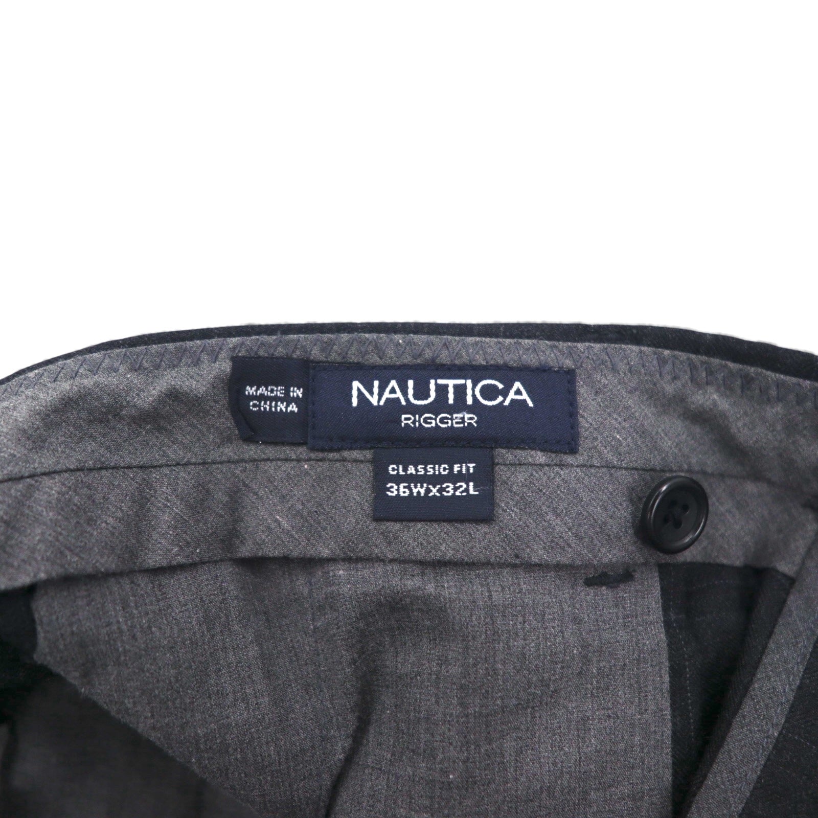 NAUTICA RIGGER Classic Fit 2-Puck Wide Leg Slacks, Size L, Gray Check Wool