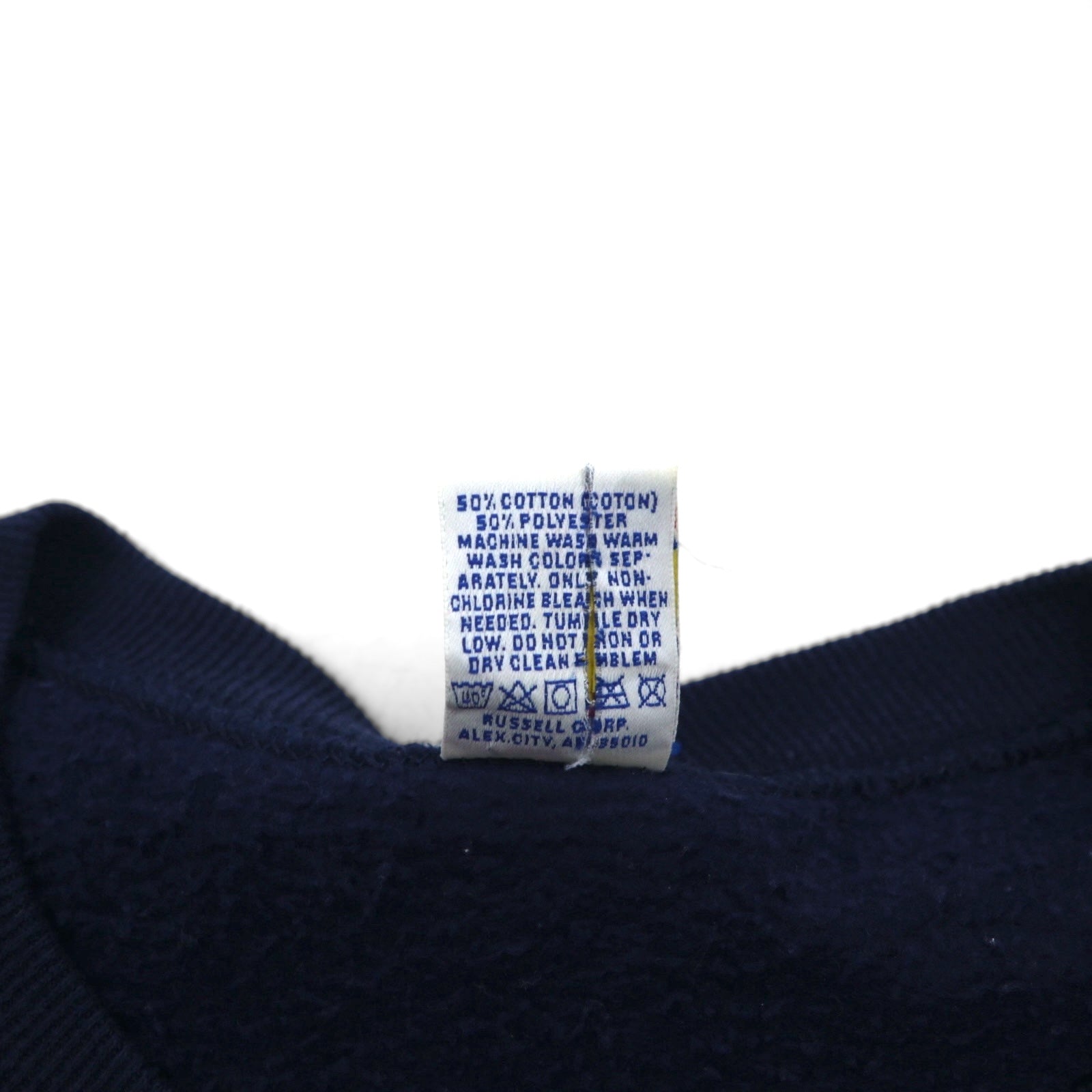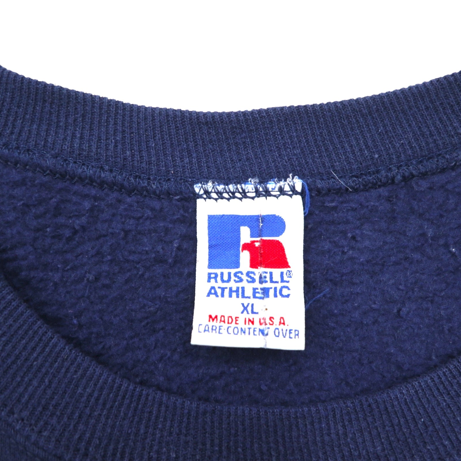 90s USA-made RUSSEL ATHLETIC college print V-neck sweatshirt, size XL, navy, fleece-lined, AUBURNS TIGERS arch logo.