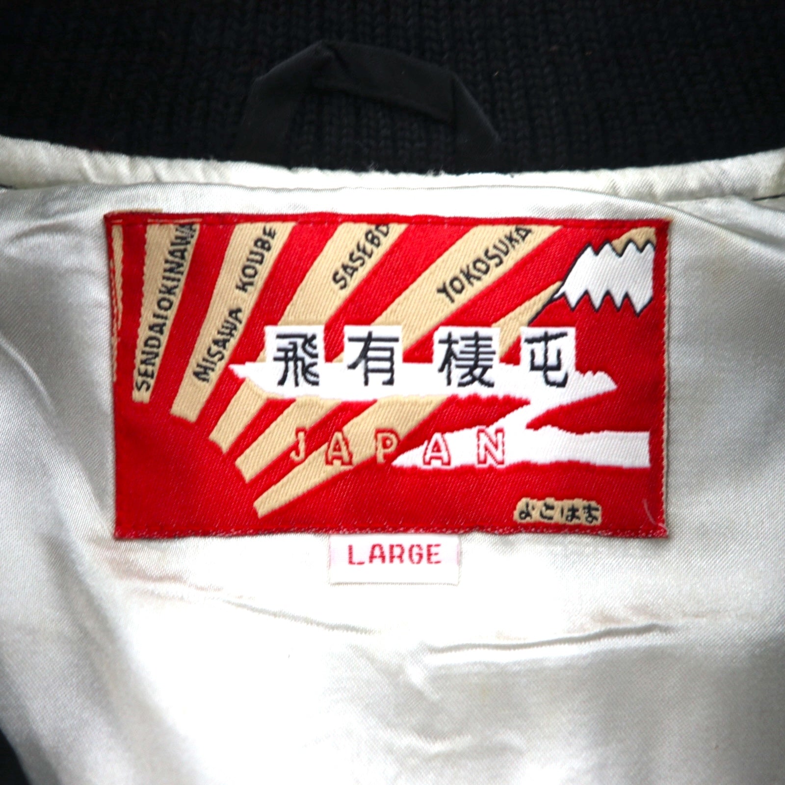 HOUSTON 90s Japanese-made Sukajan Jacket, Size L, Black Nylon, Embroidered with Tiger and Dragon Designs