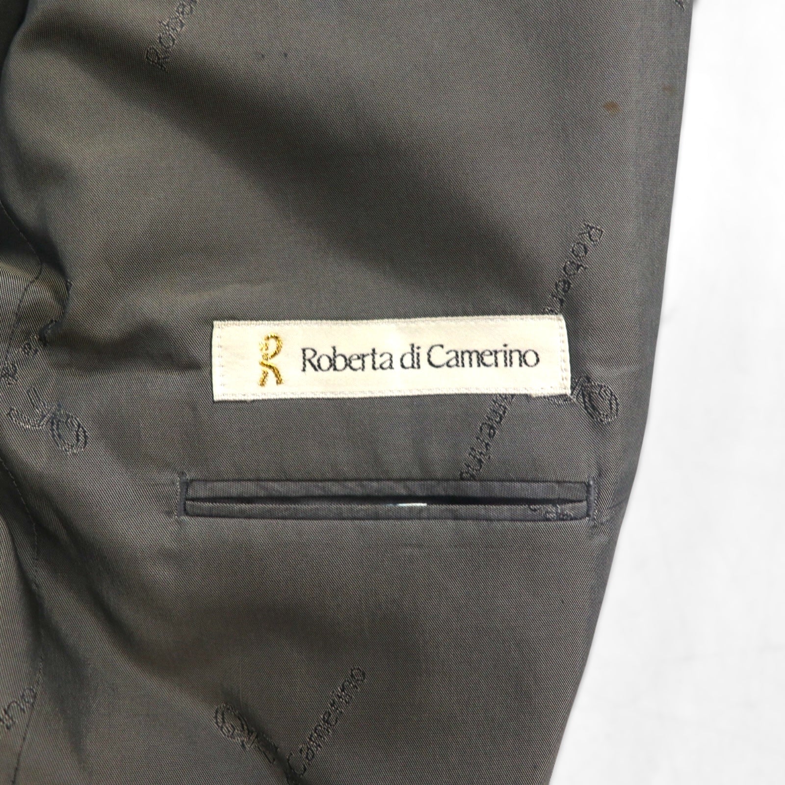 90s Japan Vintage Double-Breasted Blazer by Roberta di Camerino, Made in Japan, Herringbone Double-Breasted Tailored Jacket, Size M, Gray Wool