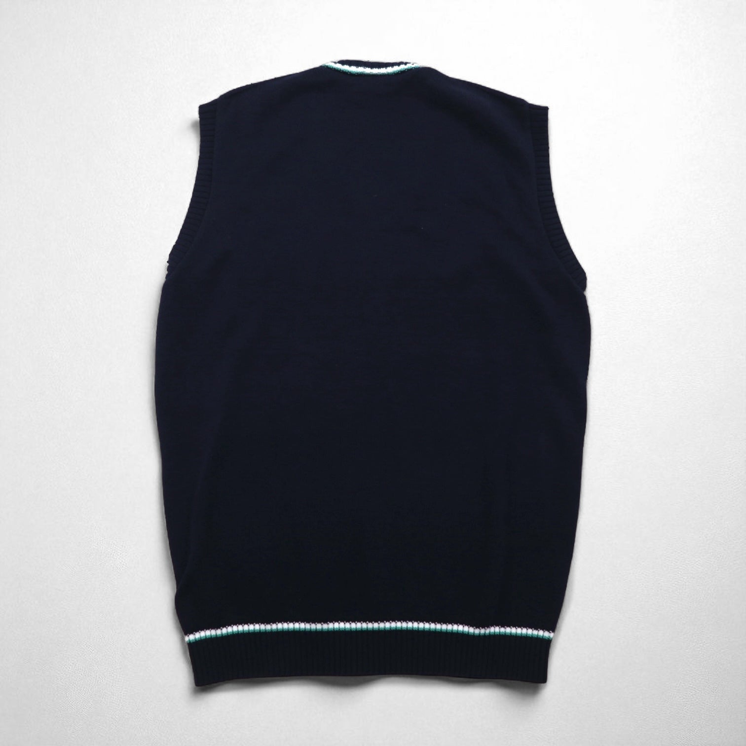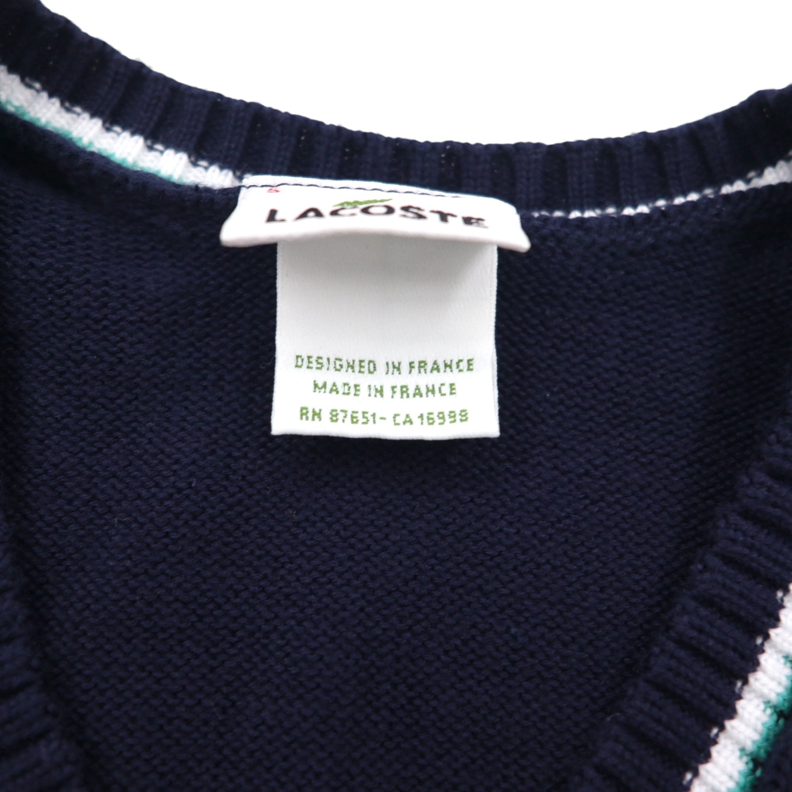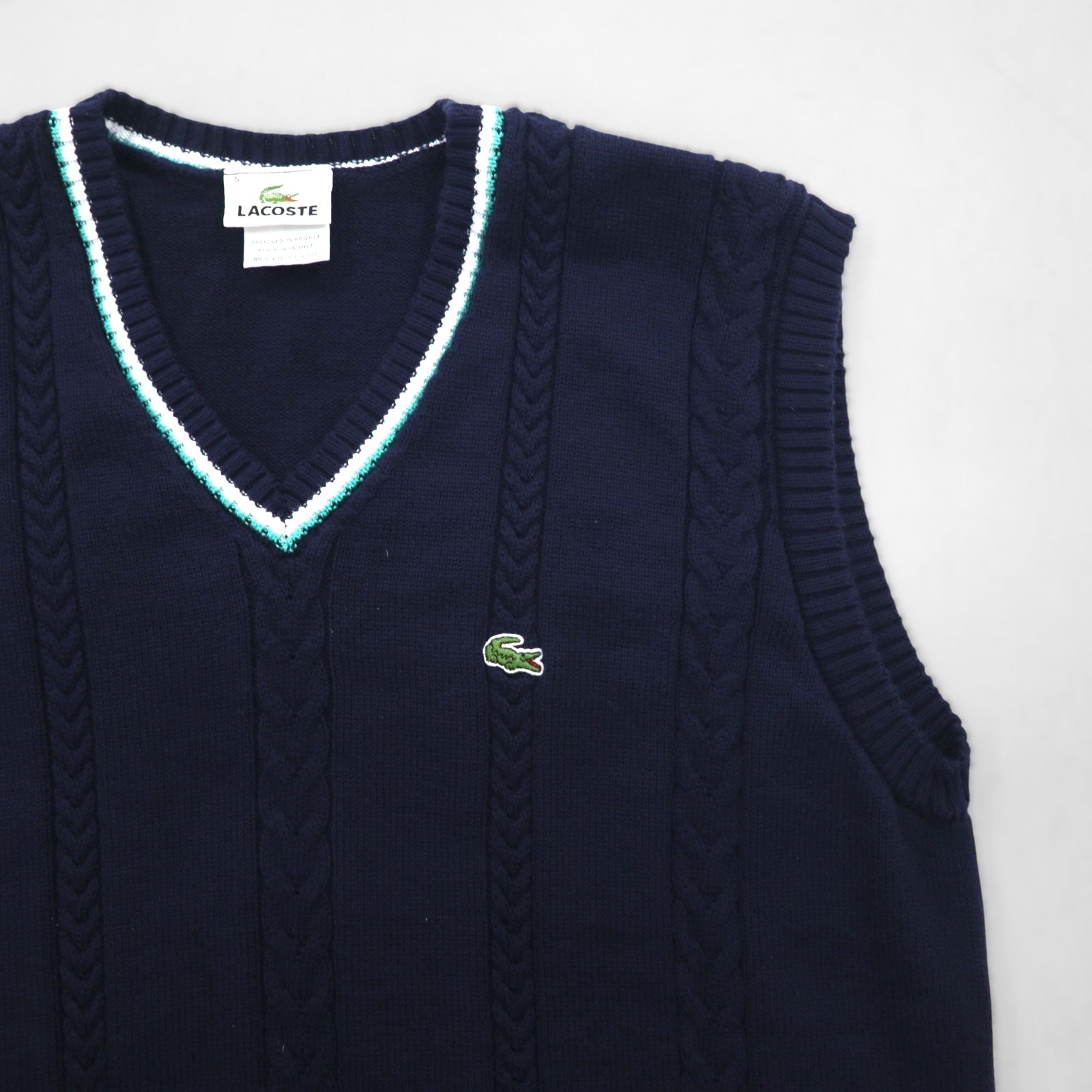 LACOSTE French-made Childen Knit V-Neck Vest, Size L, Navy, Cable Knit, Ivy