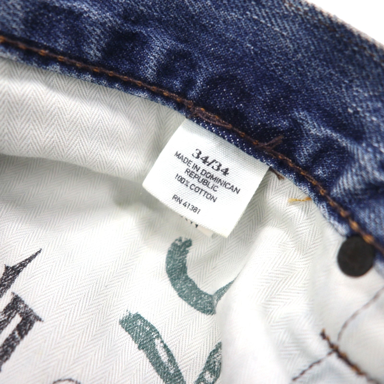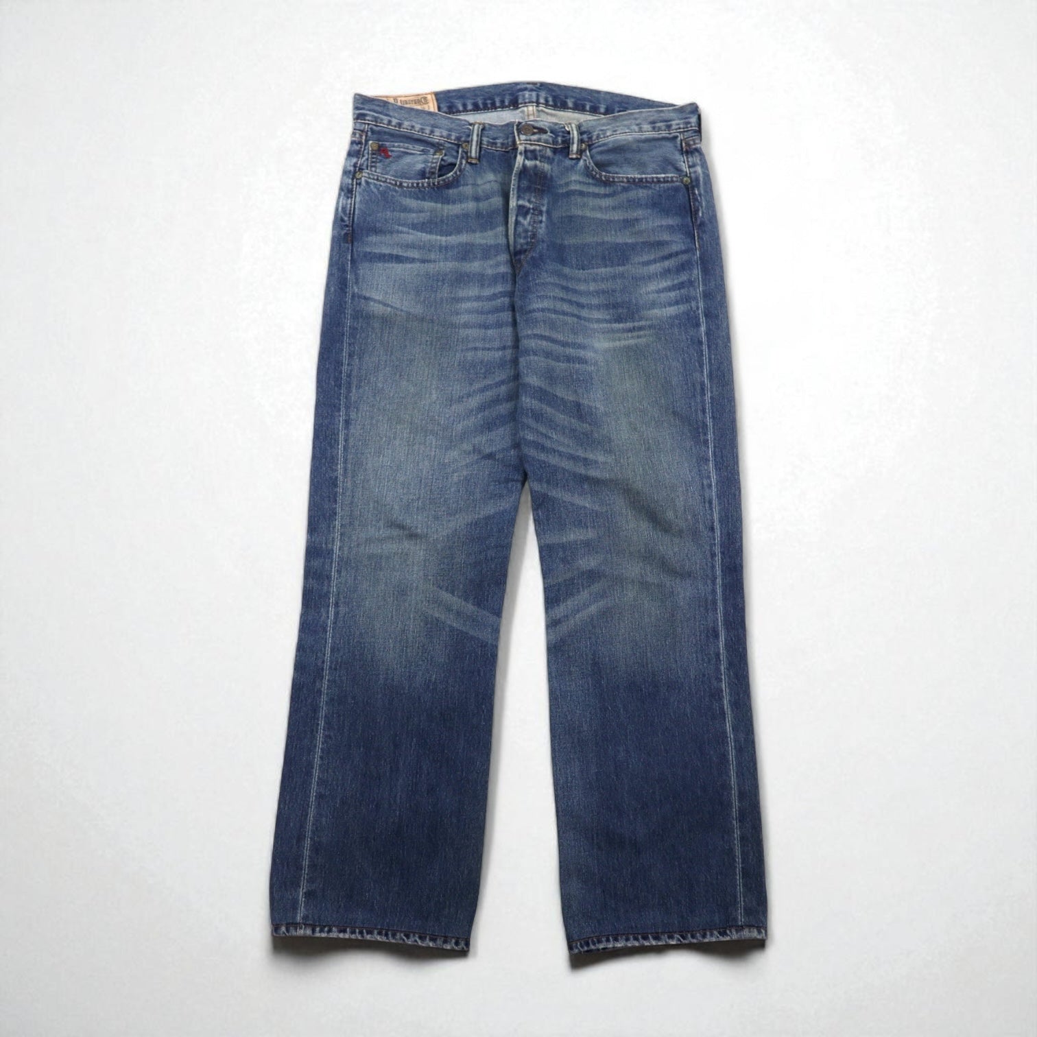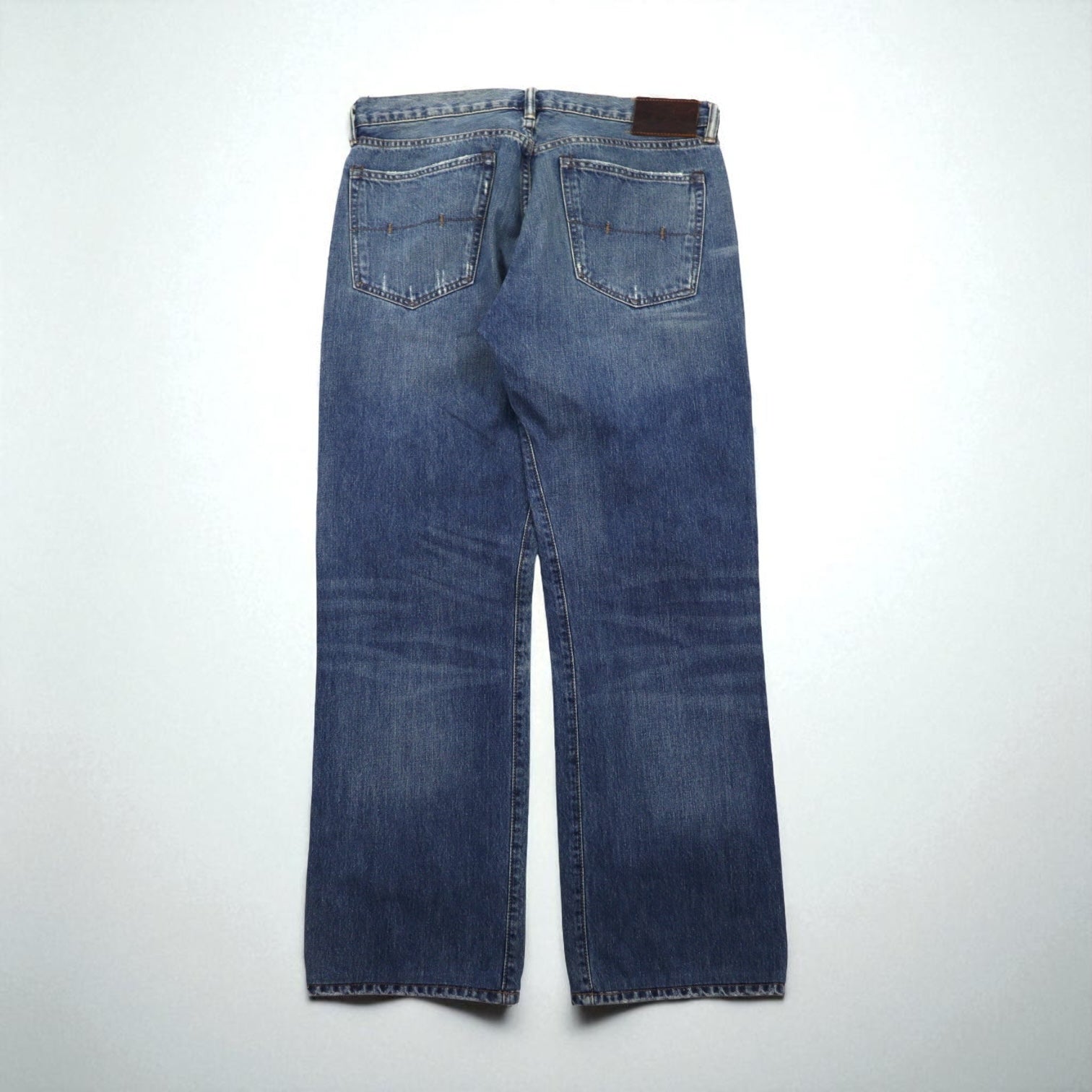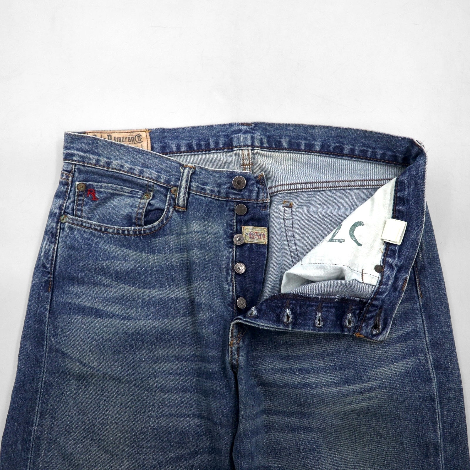 Polo Ralph Lauren denim pants, straight-leg jeans, size L, indigo, leather patch, button fly
