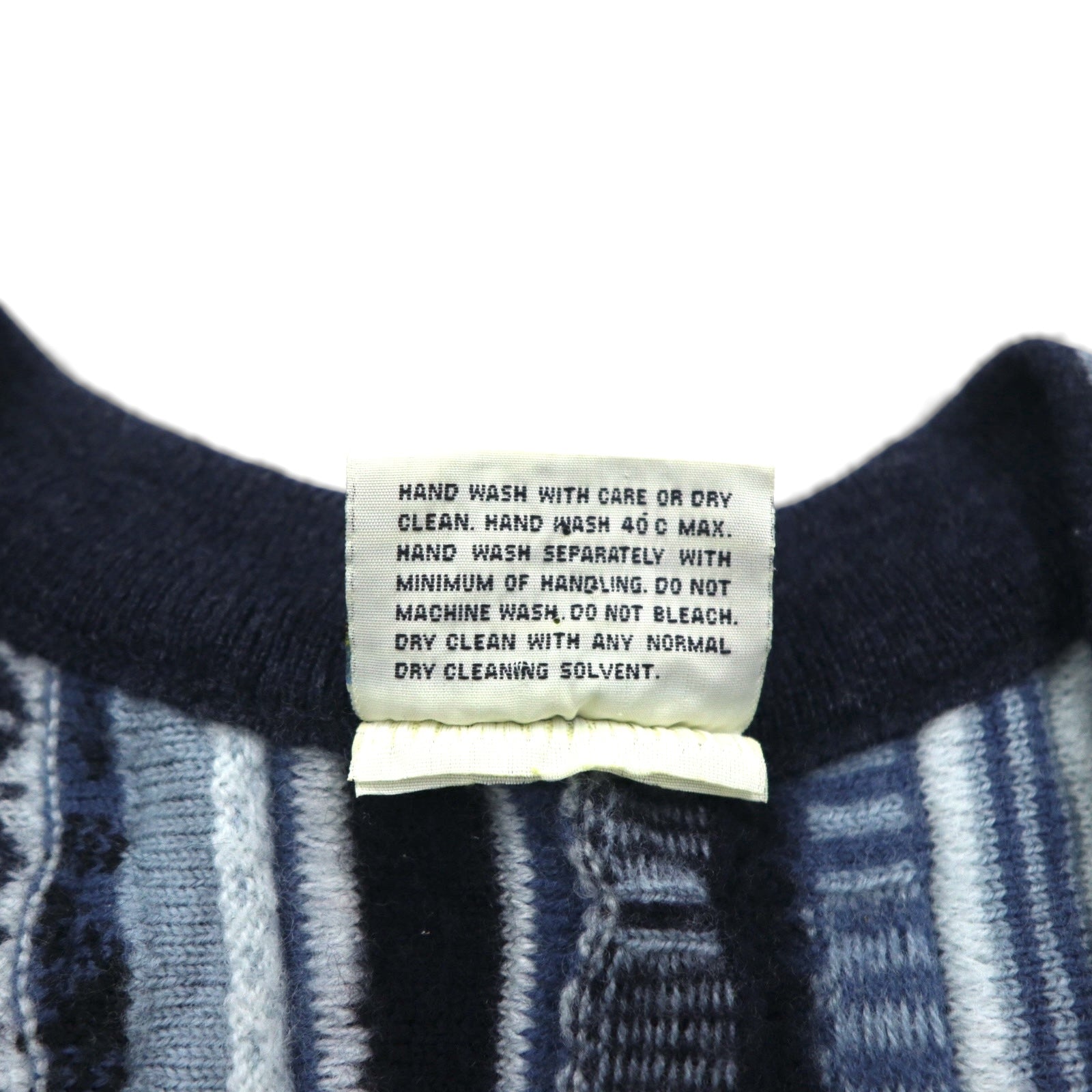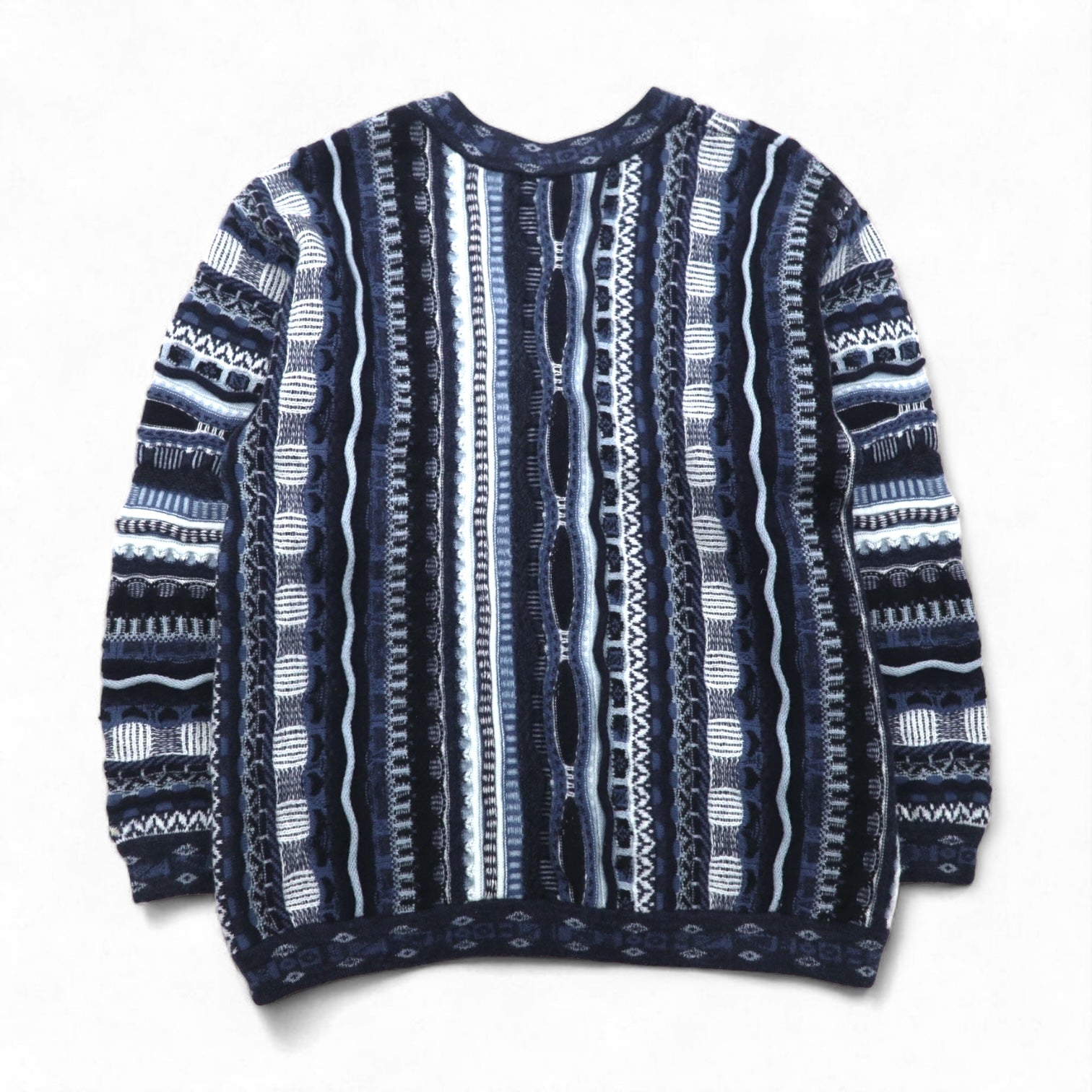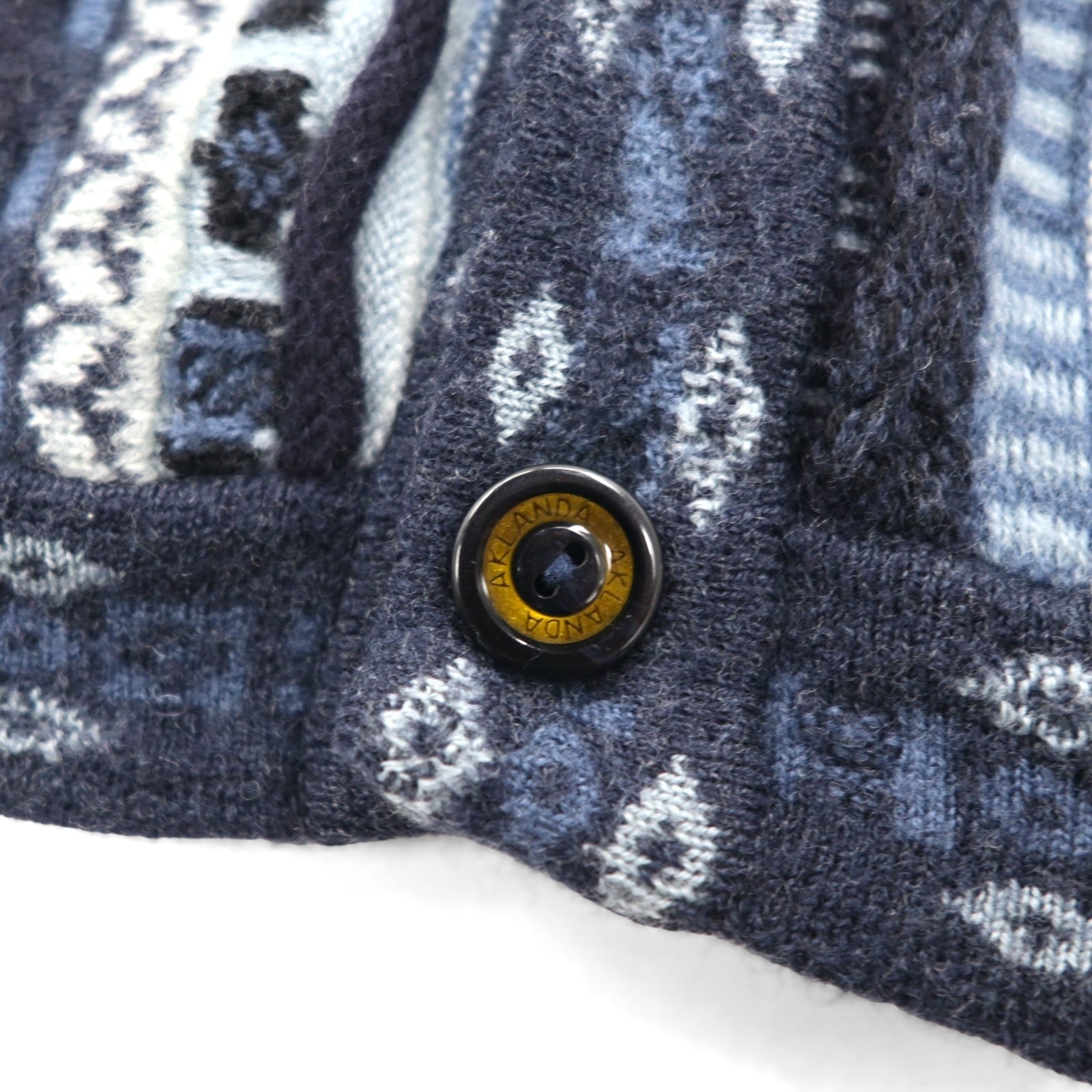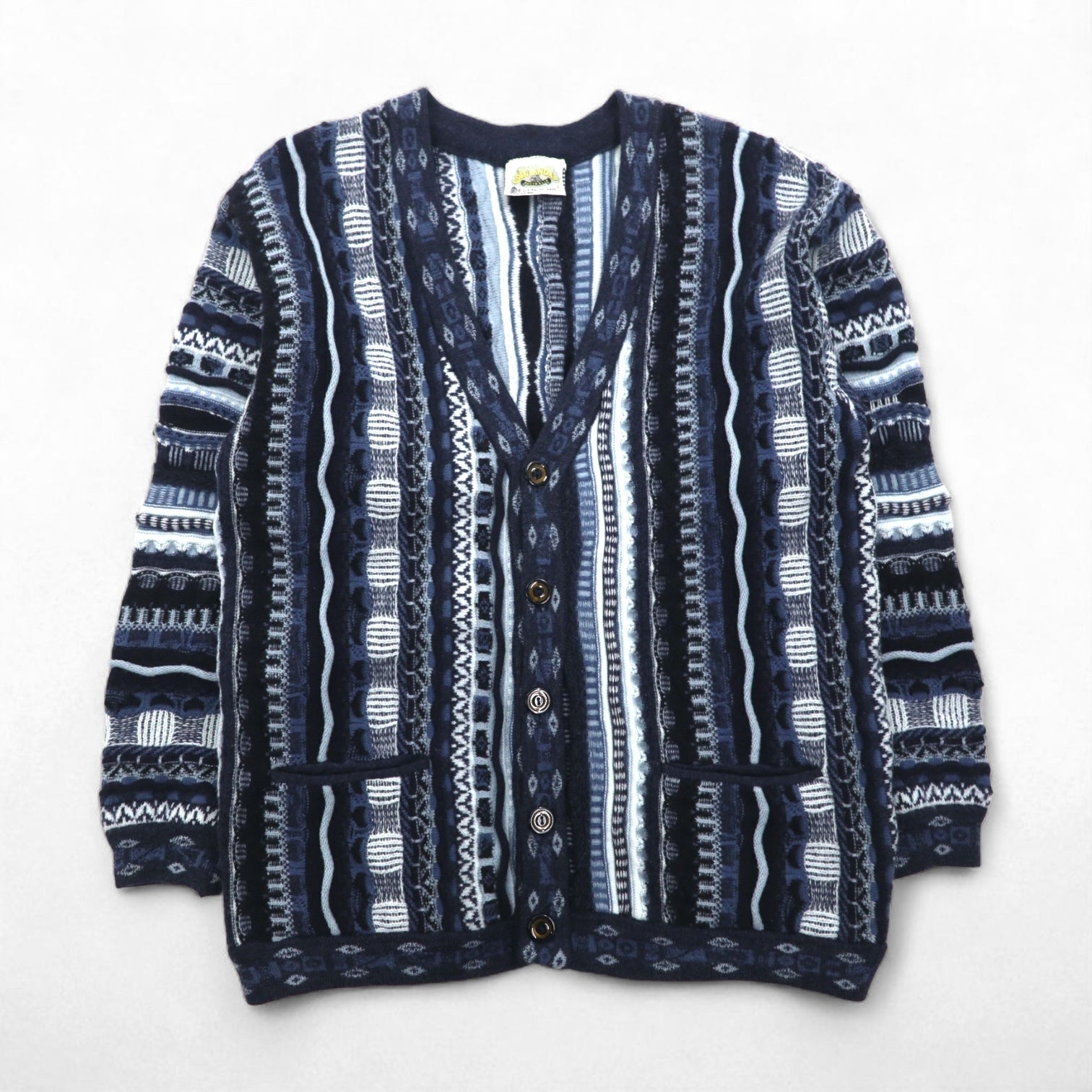 90s Australian Vintage AKLANDA 3D Knit Cardigan, 3D Knit Jacquard Cardigan, Size L, Navy, Made in Australia
