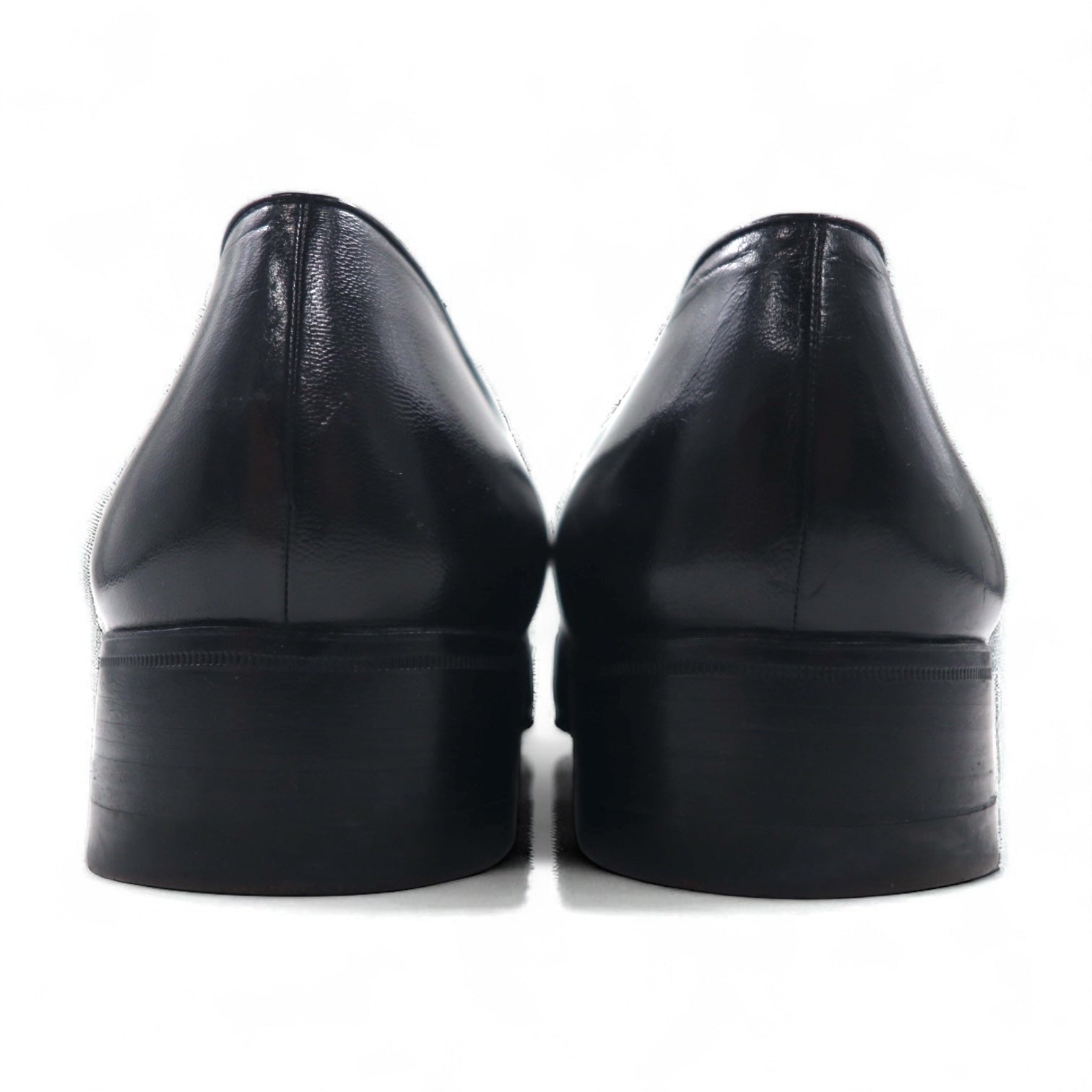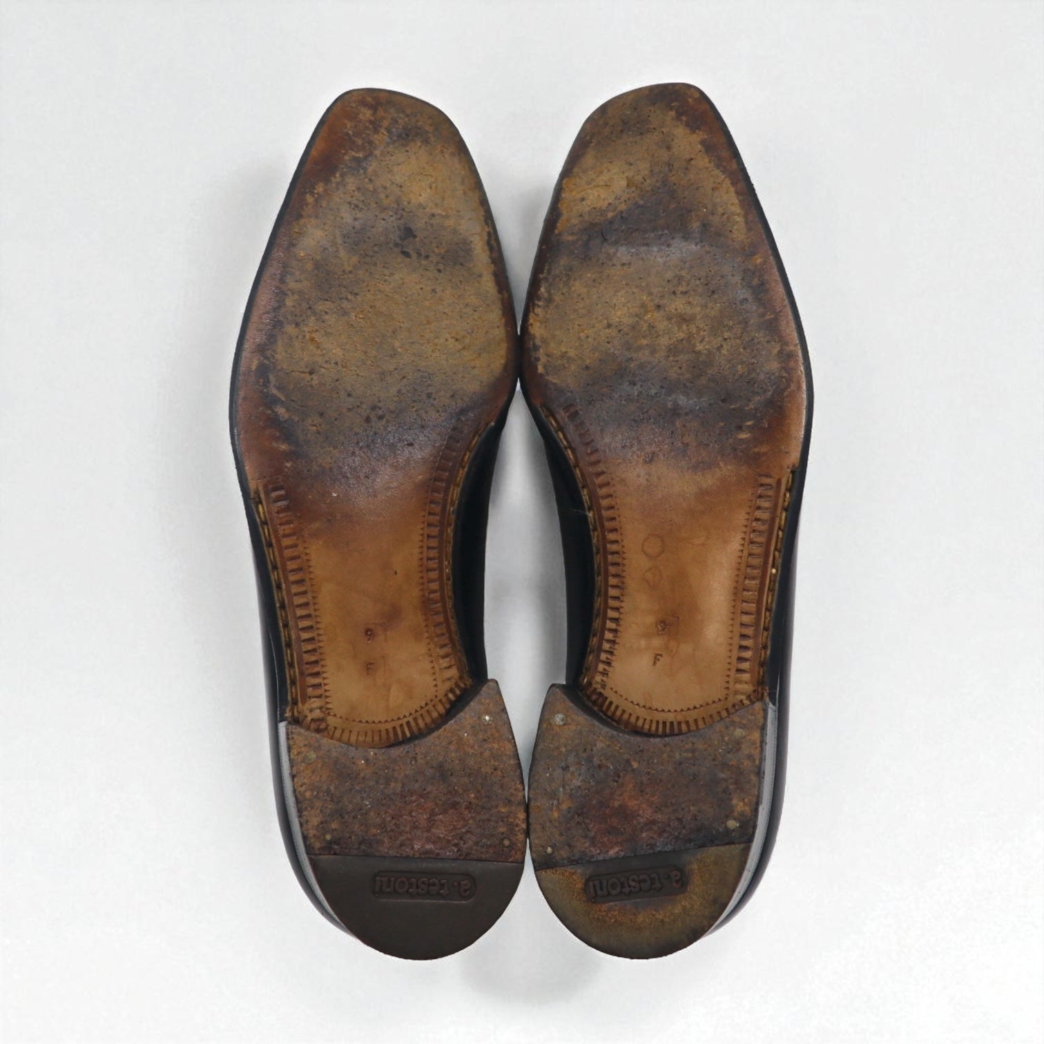 a.testoni Italian-made loafers, slip-on dress shoes, size 27cm, black leather and gold