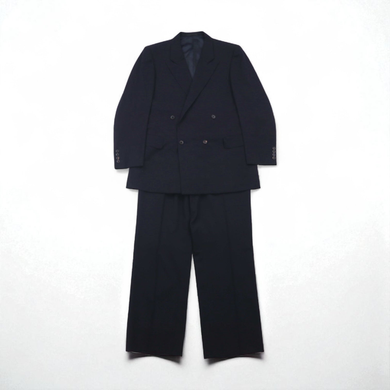 BURBERRY 90s PRESTIGE COLLECTION Made in Japan Peak Lapel Double-Breasted Suit, Size M, Navy Wool