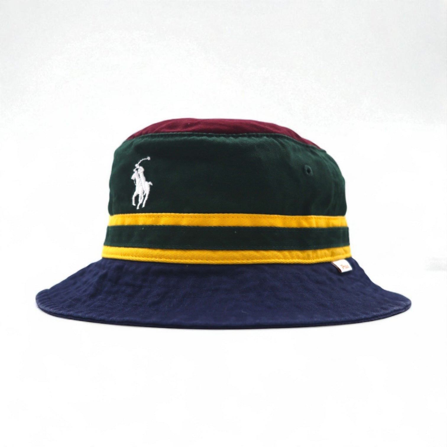Polo Ralph Lauren Bucket Hat in Navy Cotton with Colorblock Small Pony Embroidery