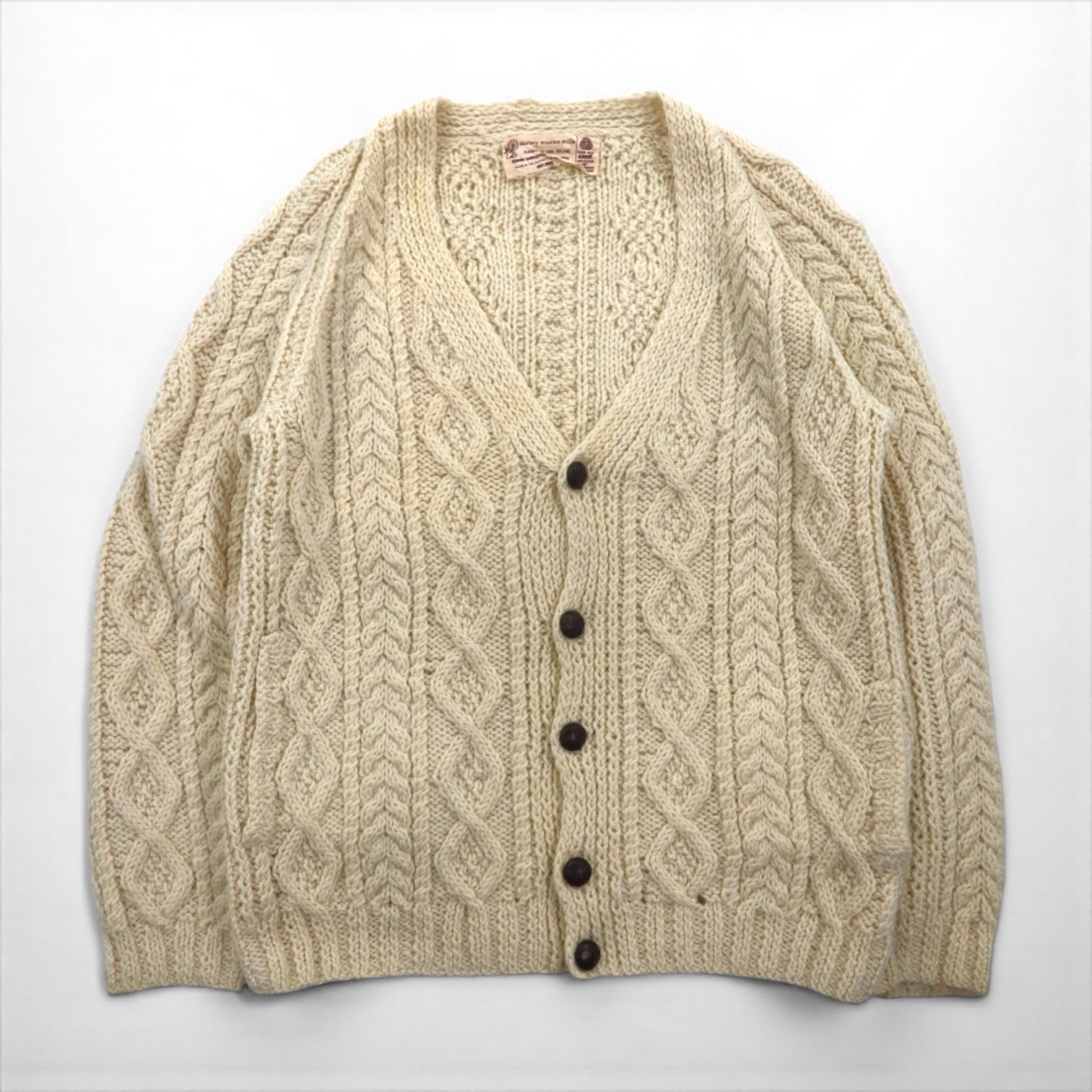 80s Irish Vintage Fisherman Knit Aran Knit Cardigan, Size M, Low Gauge, Covered Buttons, Blarney Woollen Mills, Made in Ireland