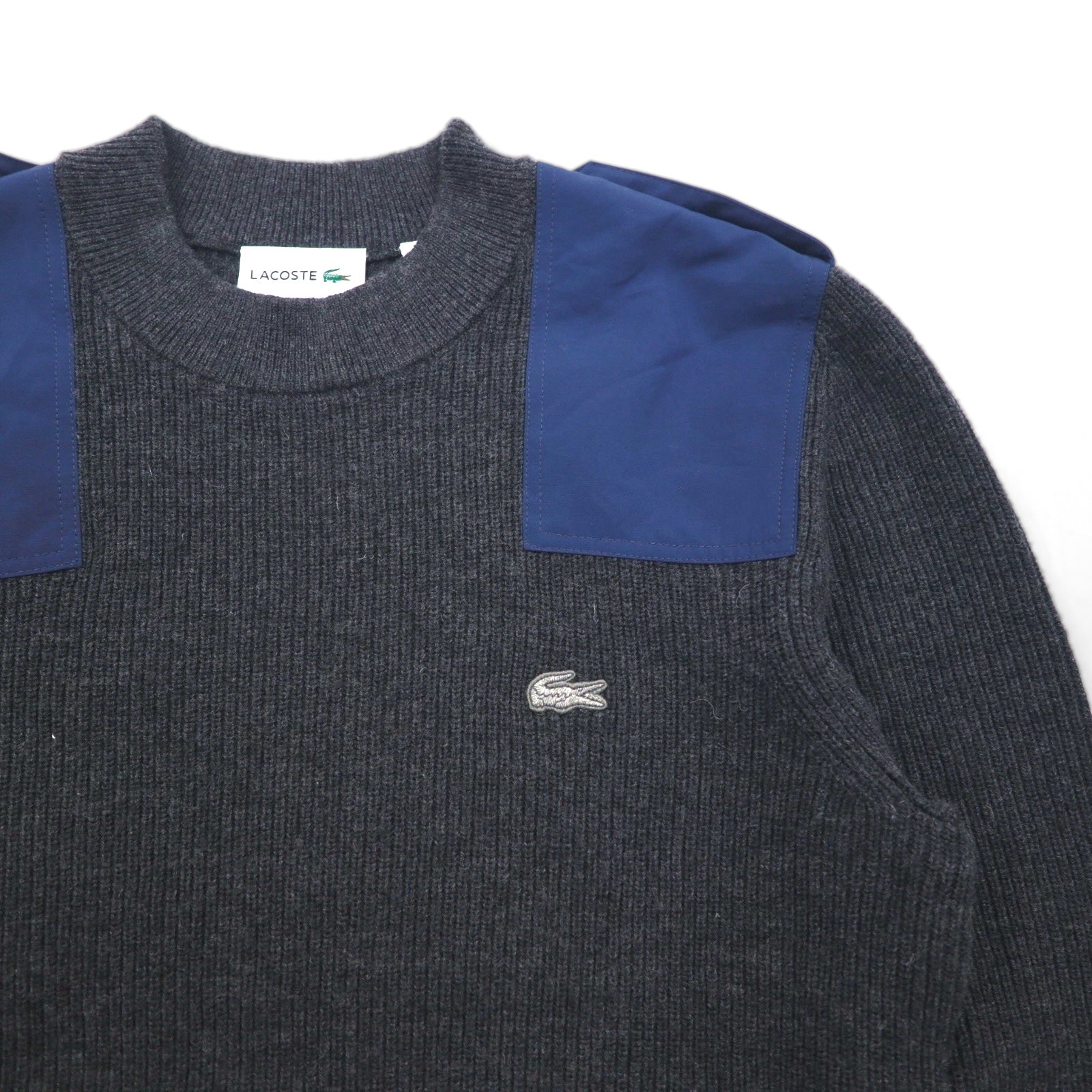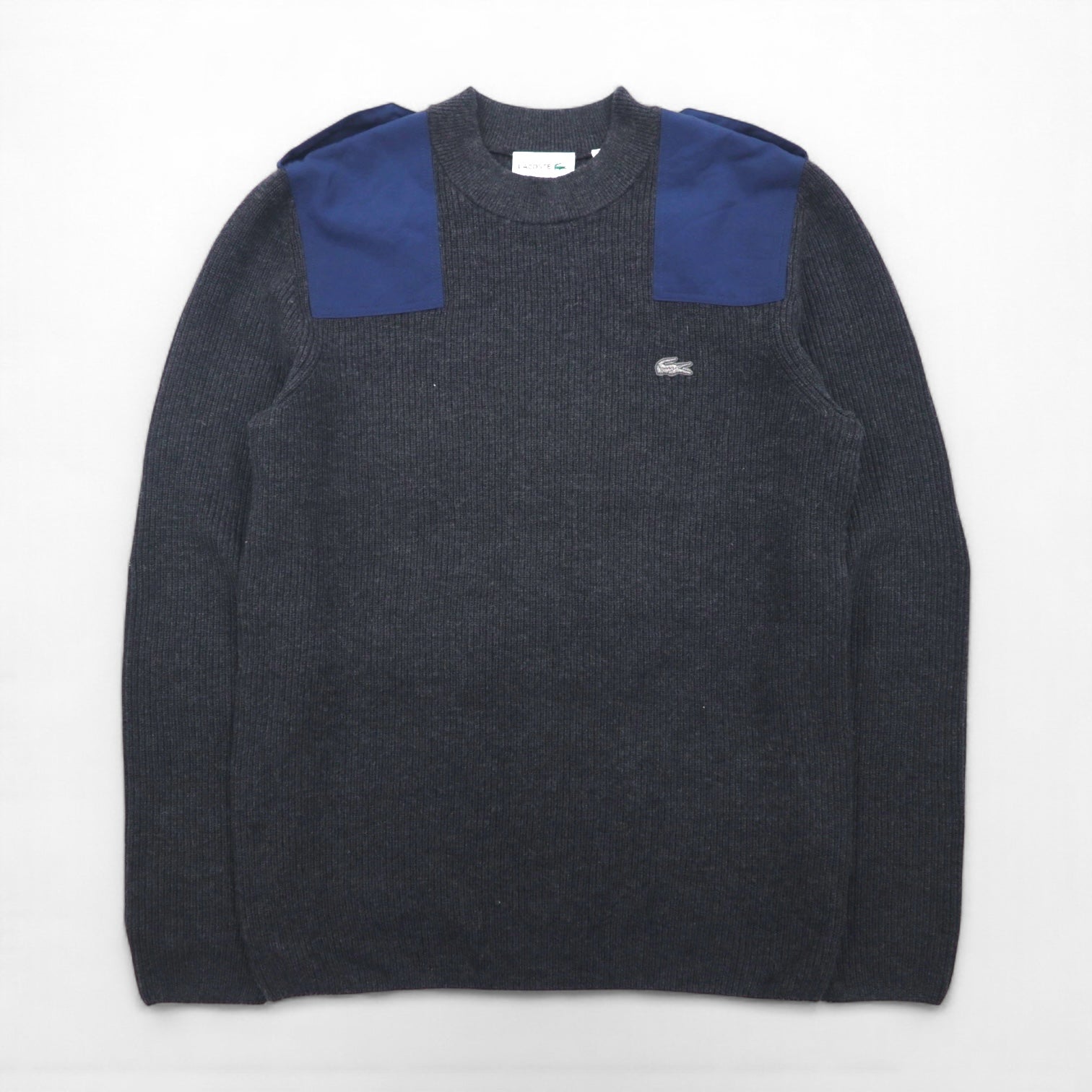 LACOSTE Commando Knit Sweater, Medium, Wool, with Epaulettes and Elbow Patches, AH9167, Dressinn