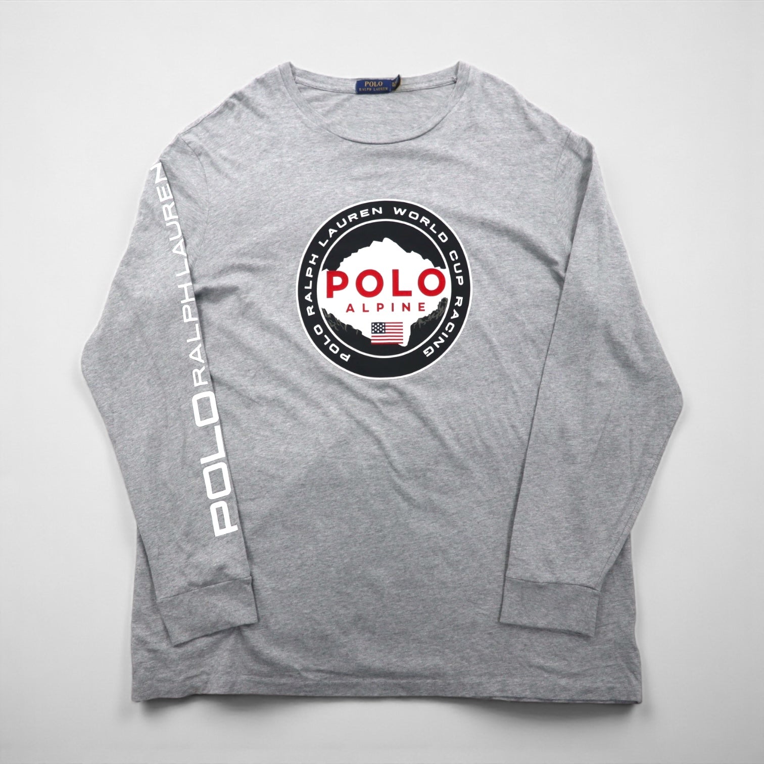 Polo Ralph Lauren Long Sleeve T-Shirt, Size XL, Gray, WORLD CUP RACING, POLO ALPINE Sleeve Logo