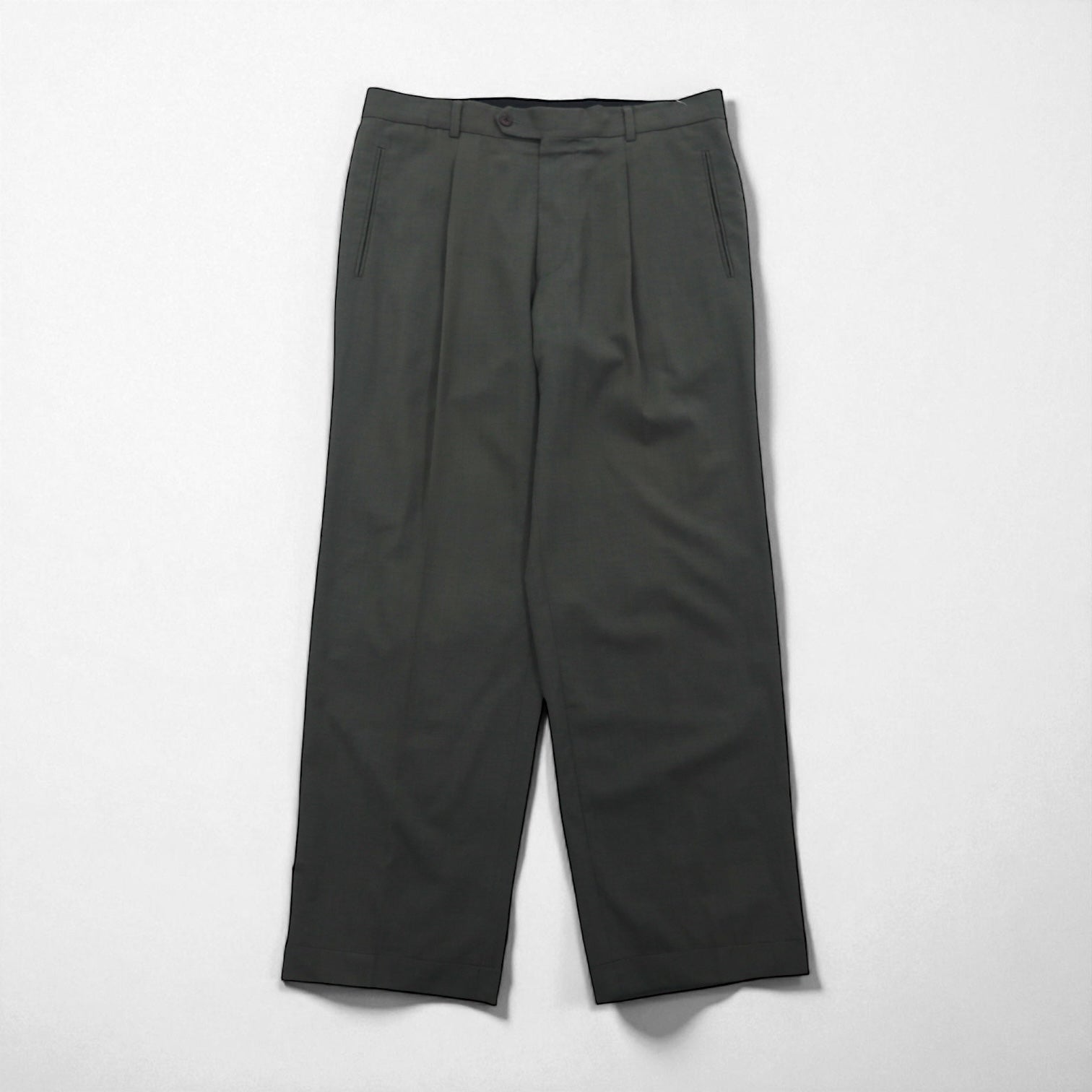 HUGO BOSS 90s Made in USA Wide-leg Pleated Tuck Slacks, Size L, Gray Wool