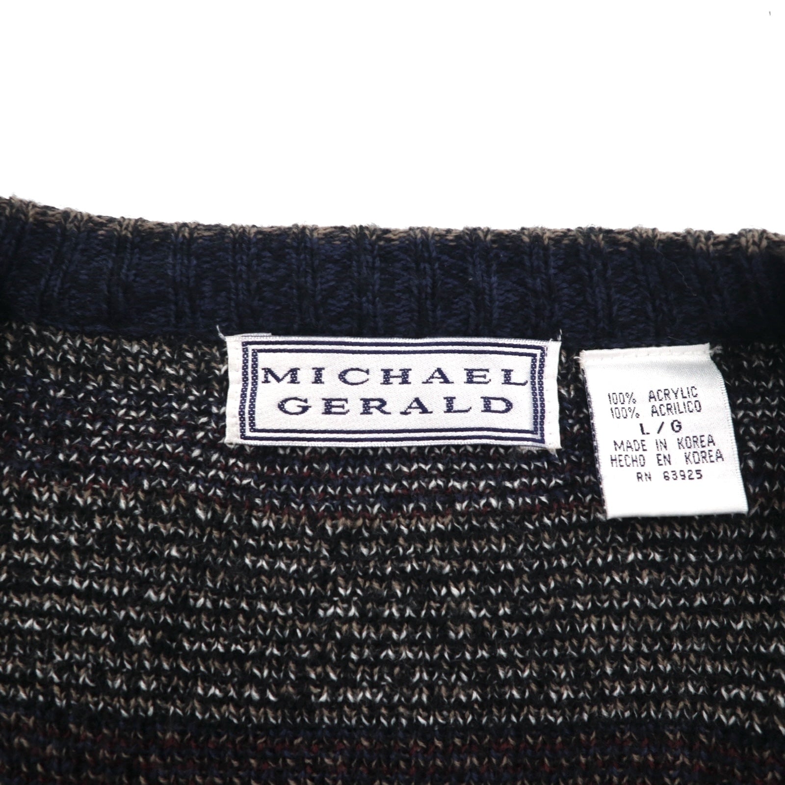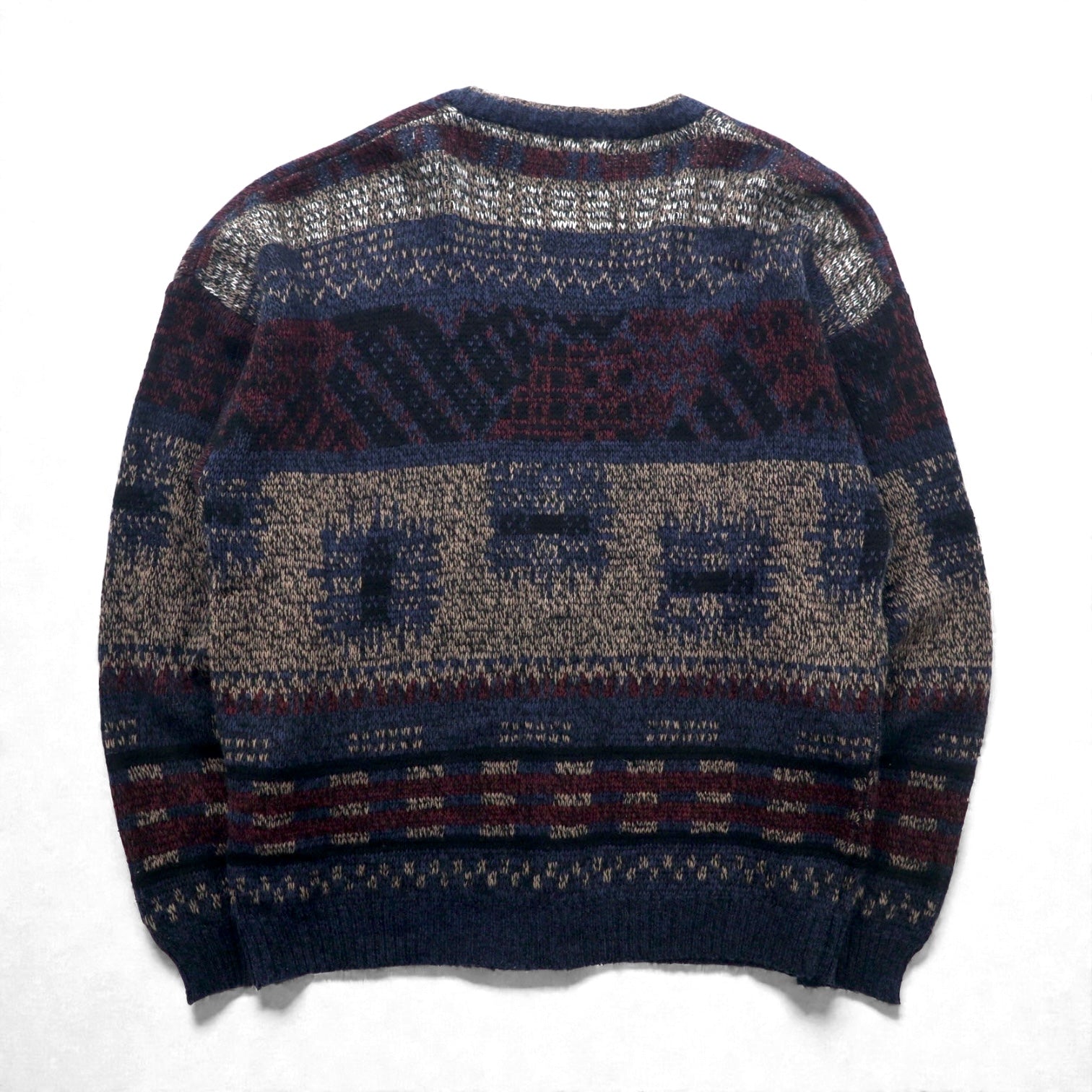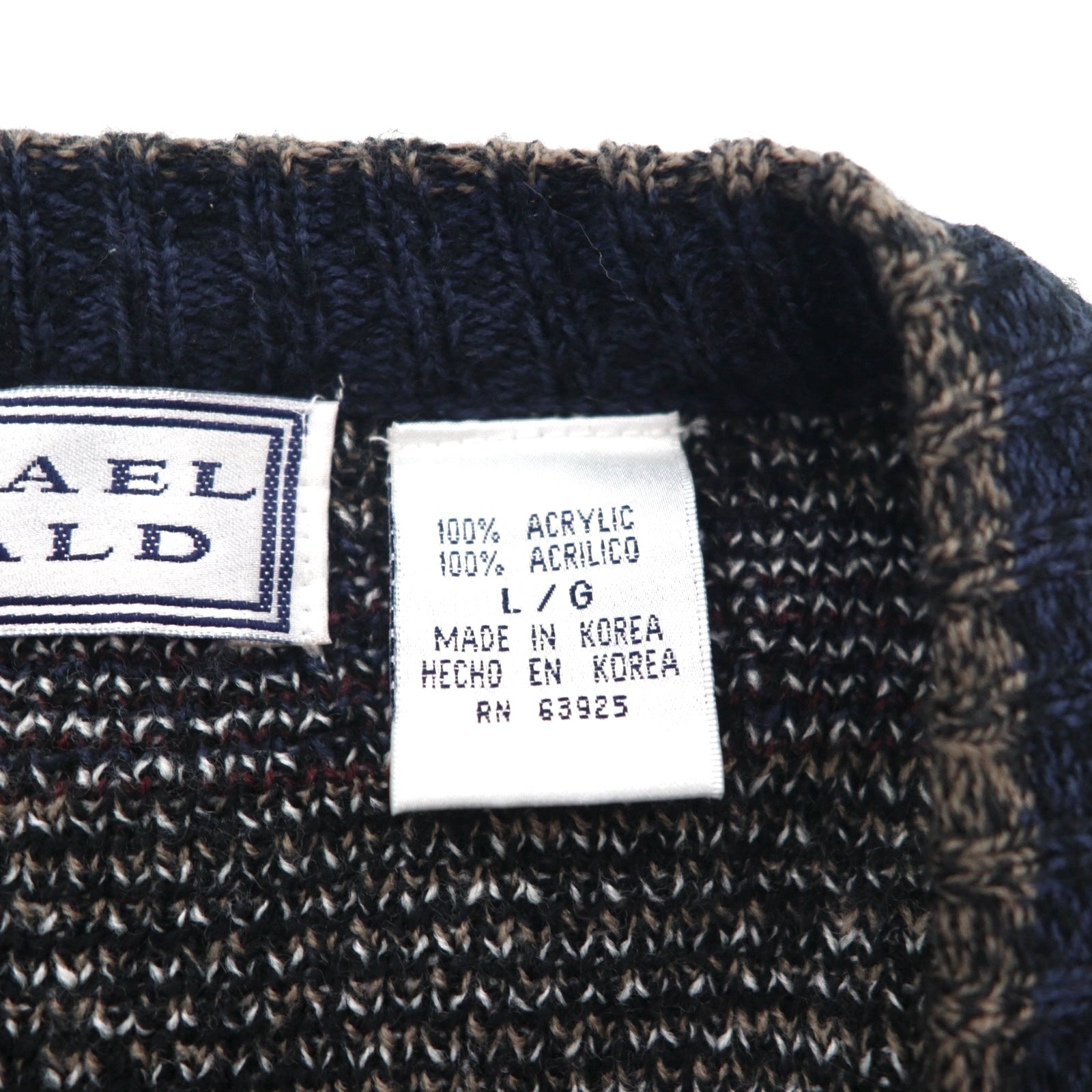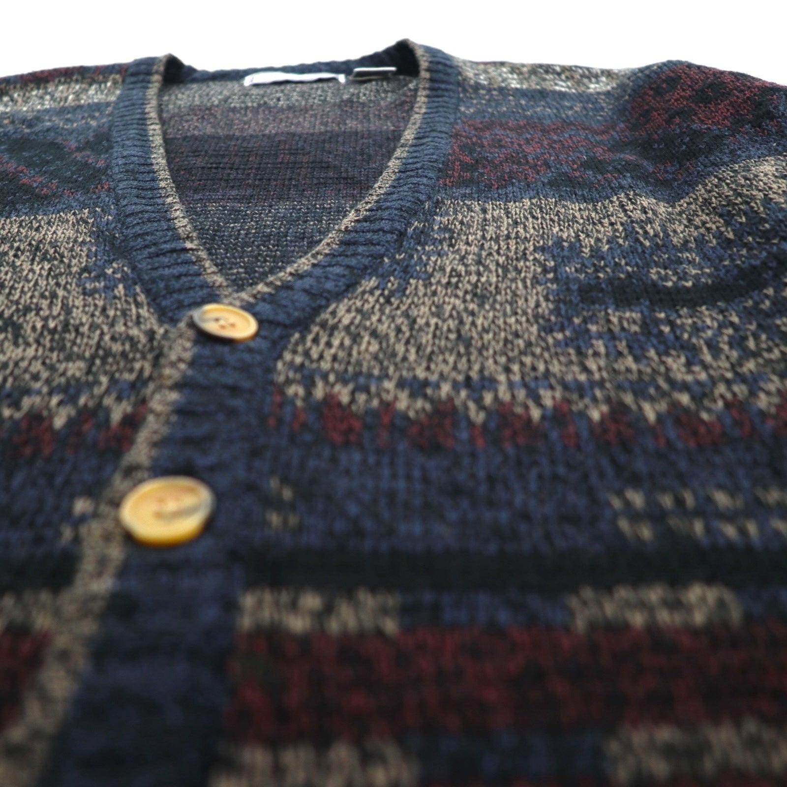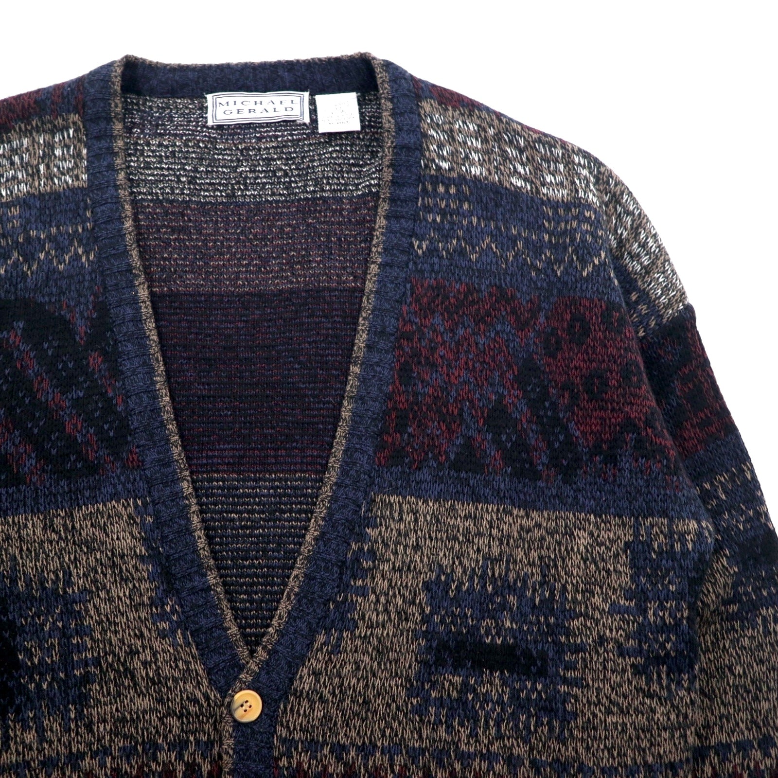 MICHAEL GERALD 90年代 総柄 ジャガードニット カーディガン L ネイビー アクリル
