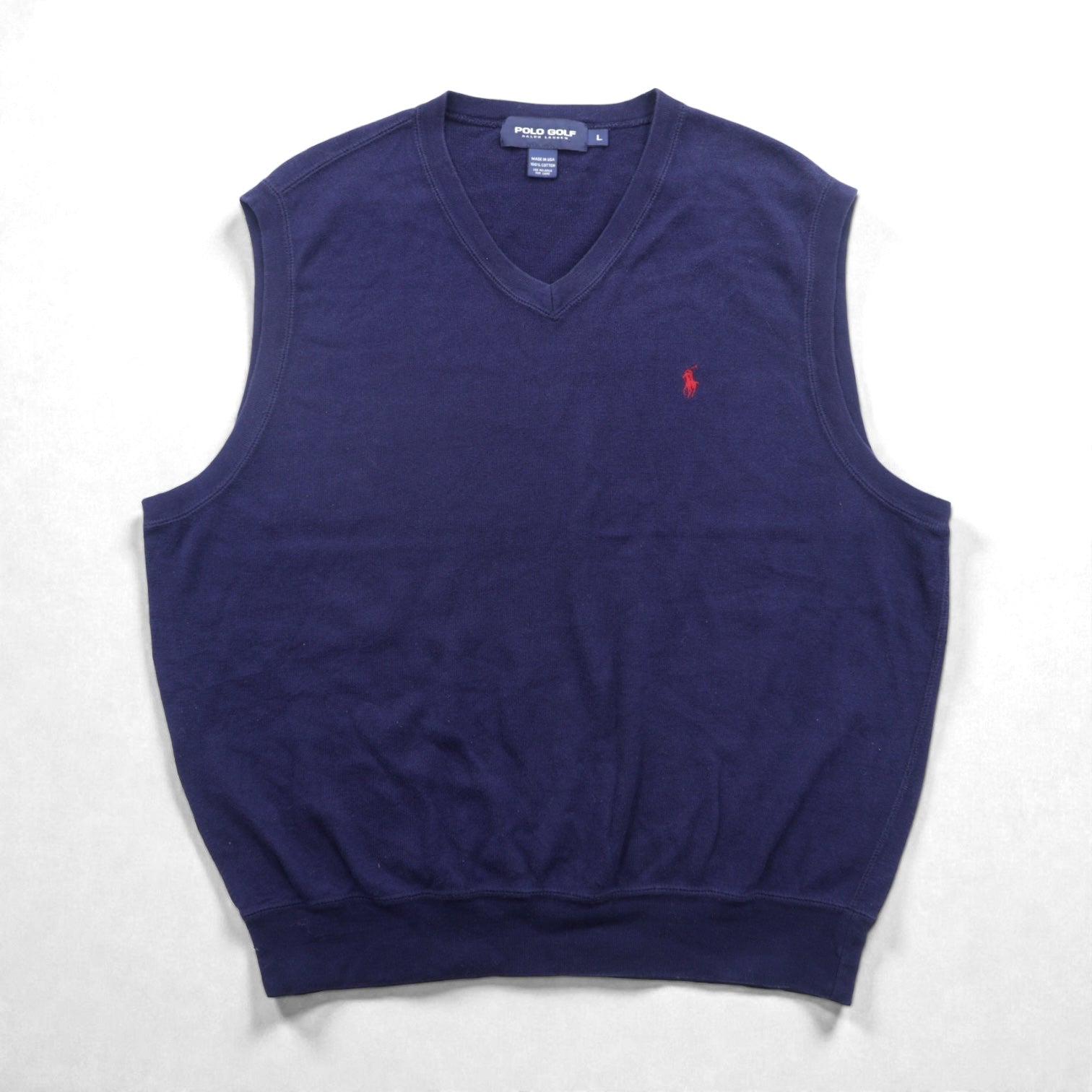 POLO GOLF RALPH LAUREN 90年代 USA製 Vネック ニット ベスト L ネイビー スモールポニー刺繡