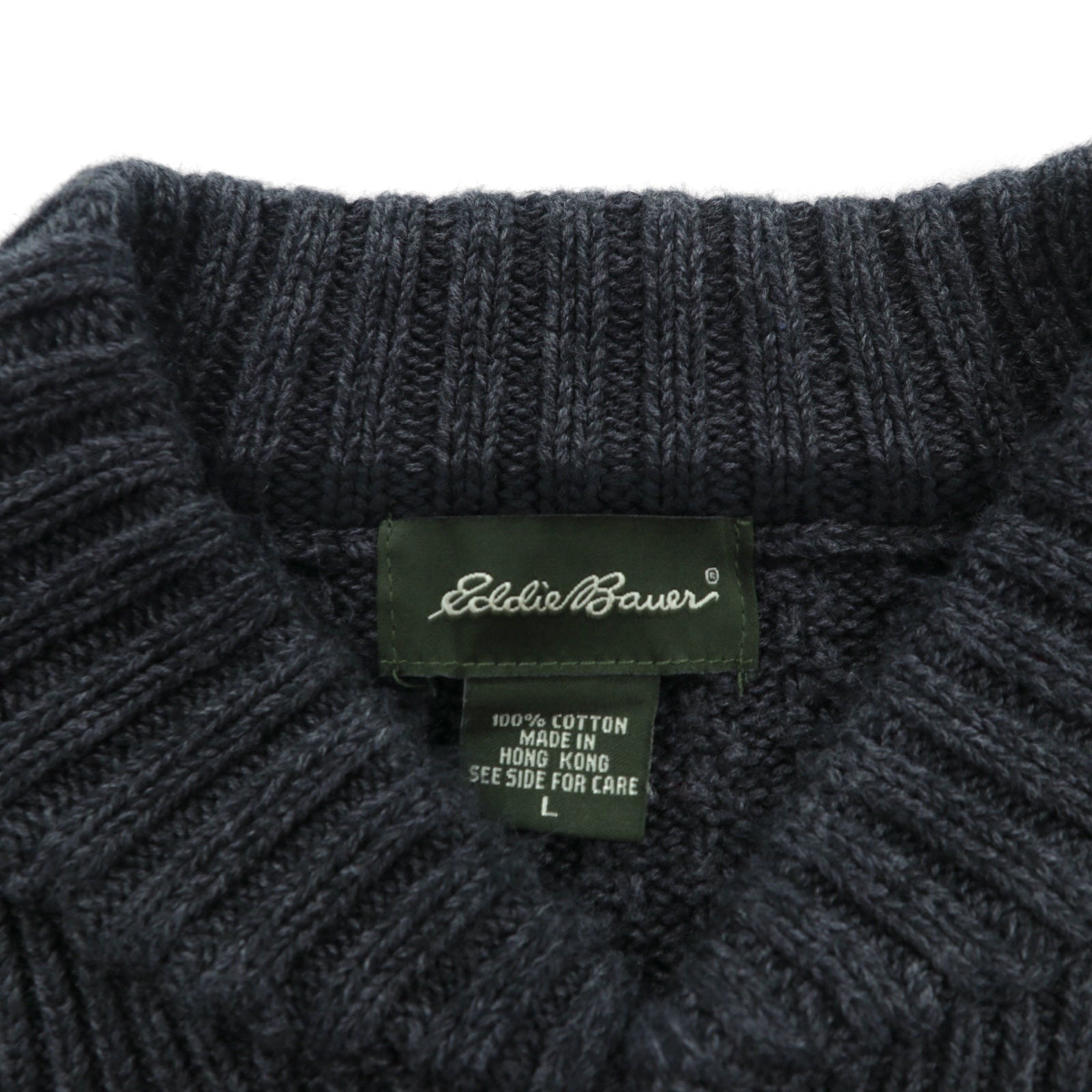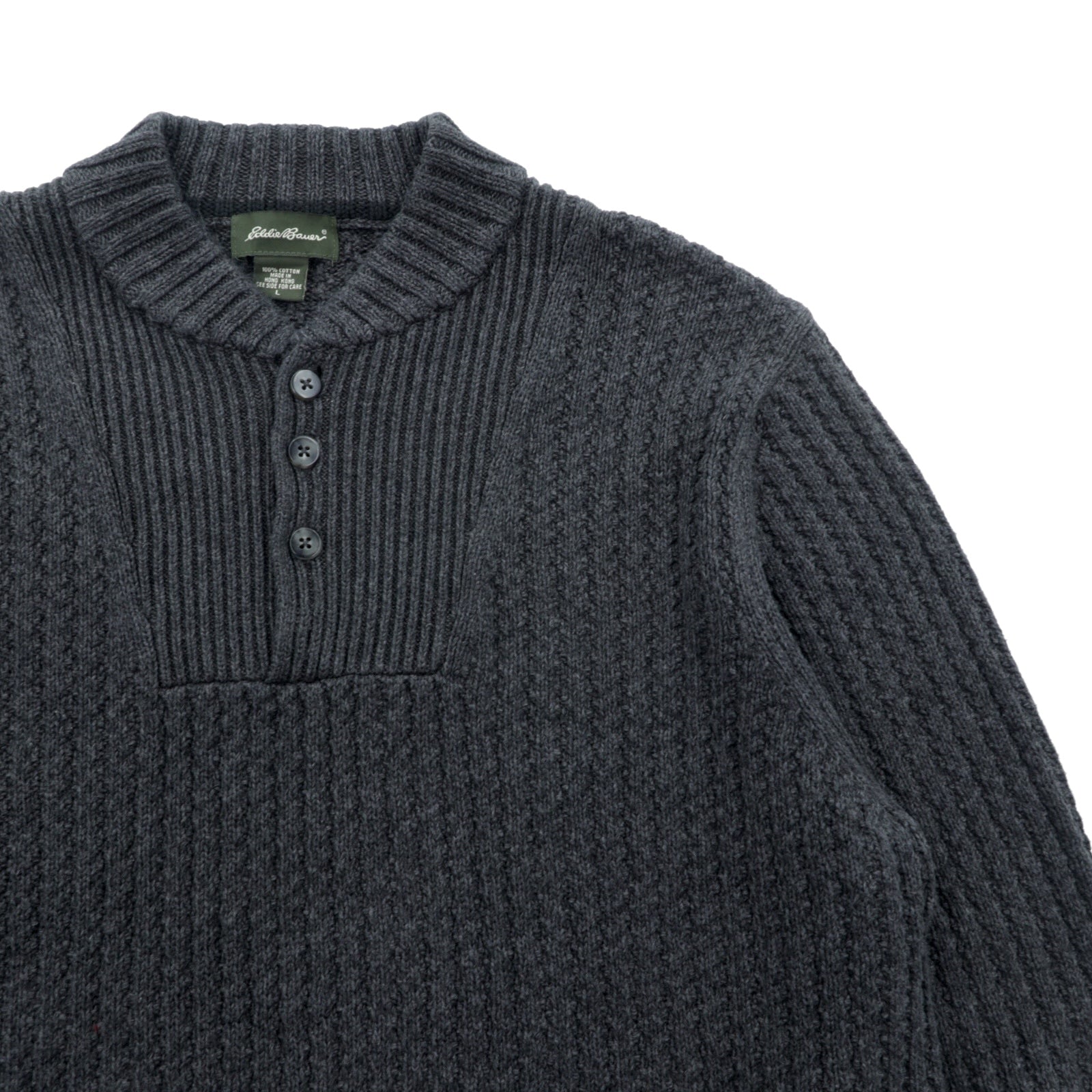 Eddie Bauer ヘンリーネック リブニット セーター L グレー コットン