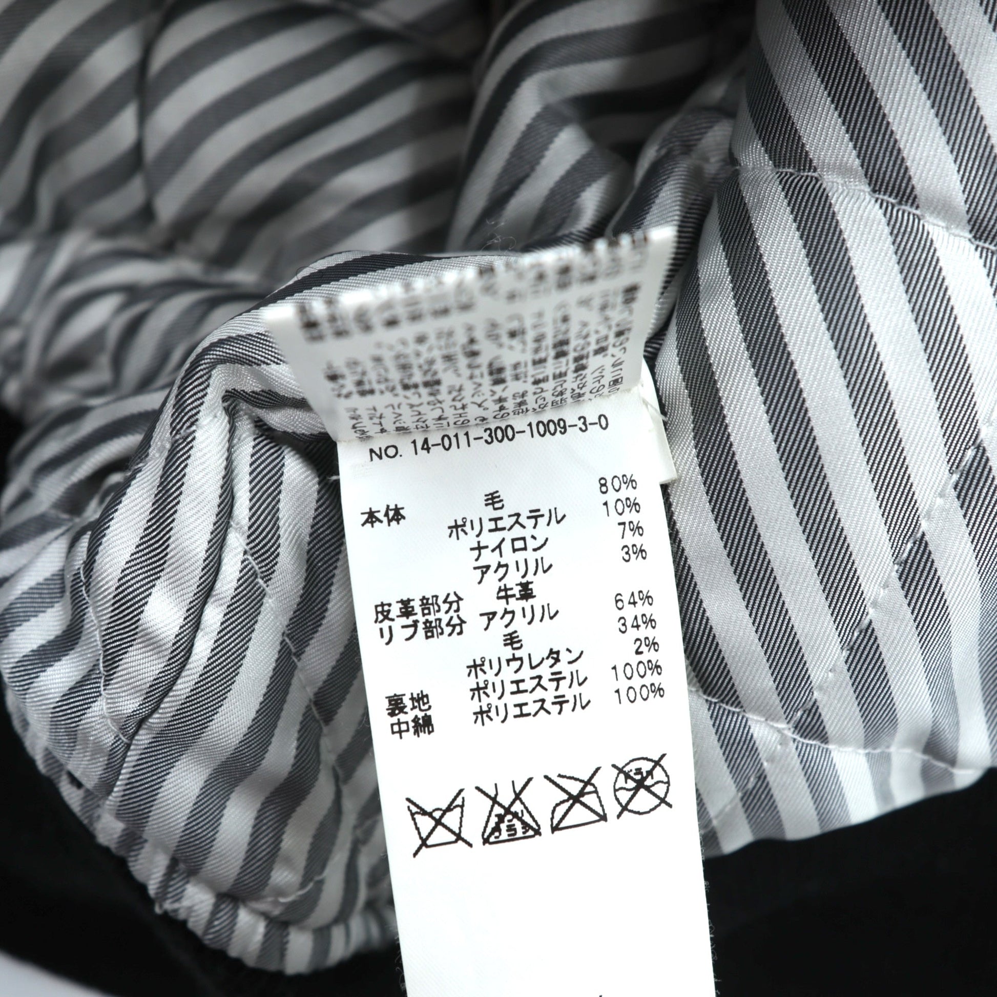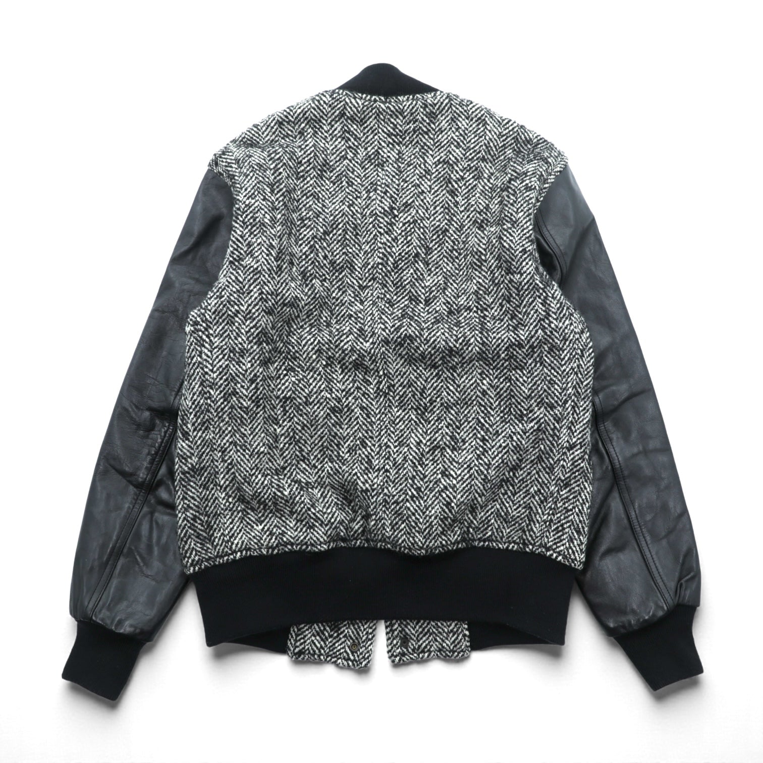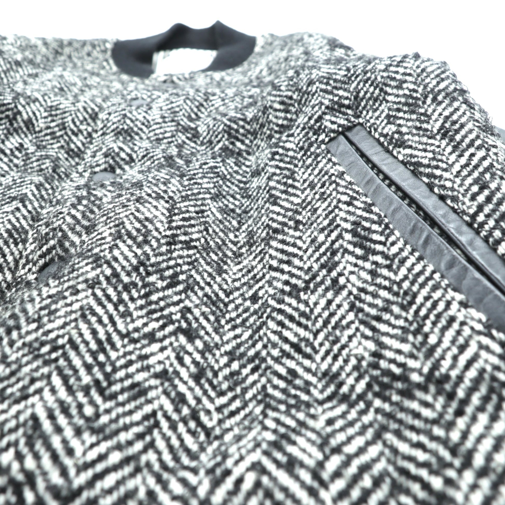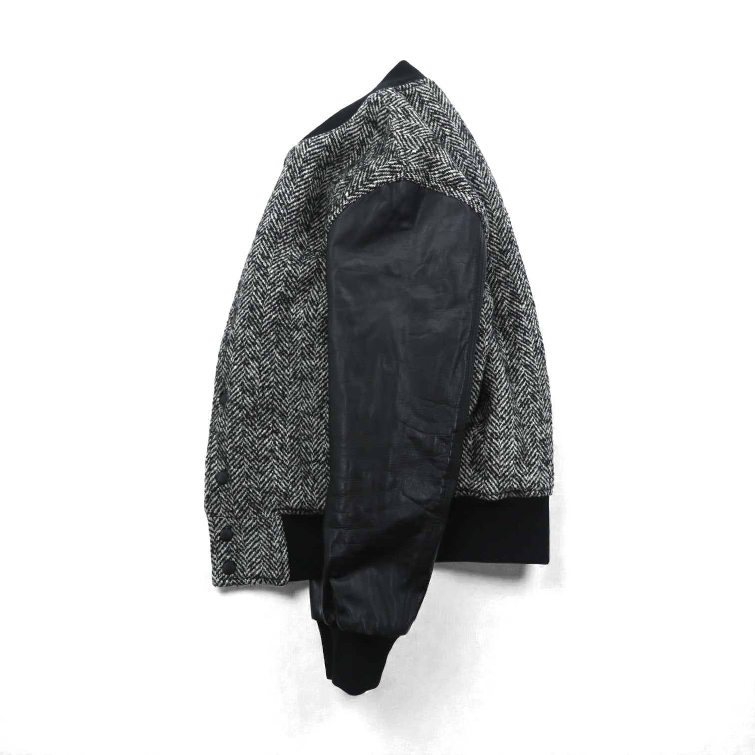EDIFICE 袖レザー切替 スタジャン S ブラック ウール ヘリンボーン 牛革
