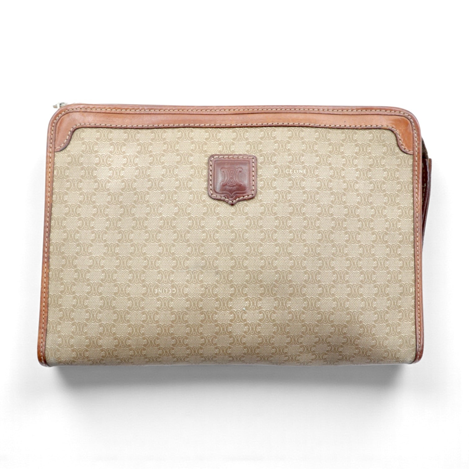 CELINE second bag beige leather riri zip macadam pattern old