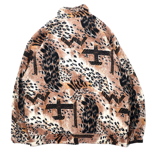 90年代 ERIN LONDON シルク ジップアップジャケット L ベージュ 総柄 レオパード