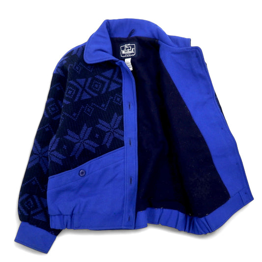 WOOLRICH USA製 80年代 ノルディック柄 ブランケットジャケット M ブルー ウール 紺タグ