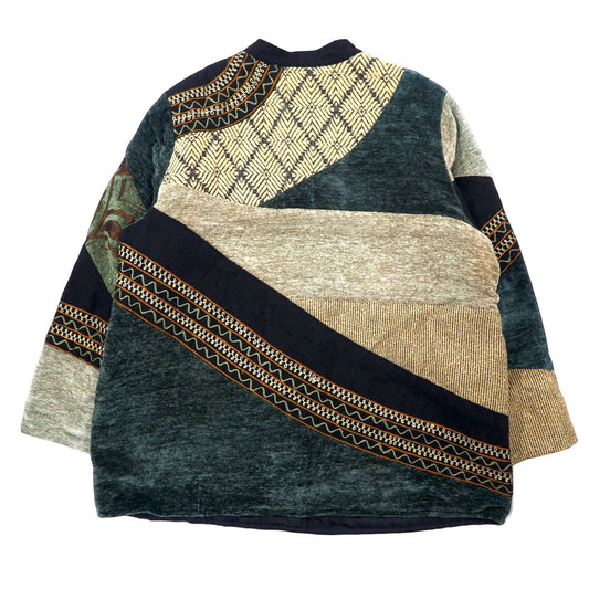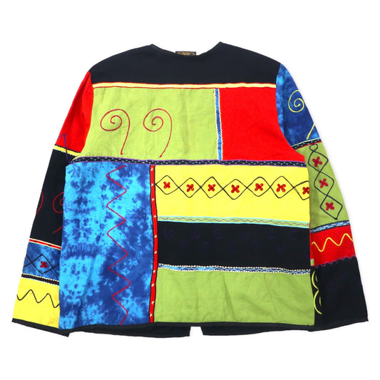 90年代 Indigo Moon 異素材切り替え タペストリージャケット 1X マルチカラー クレイジーパターン パッチワーク レーヨン コットン