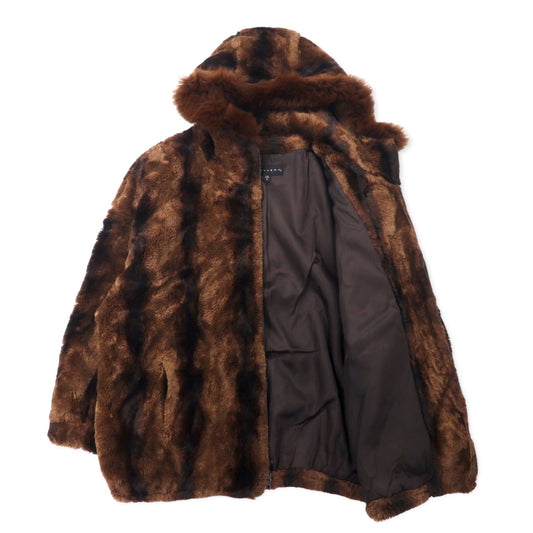 USA製 GALLERY フェイクファー パーカー L ブラウン アクリル ストライプ