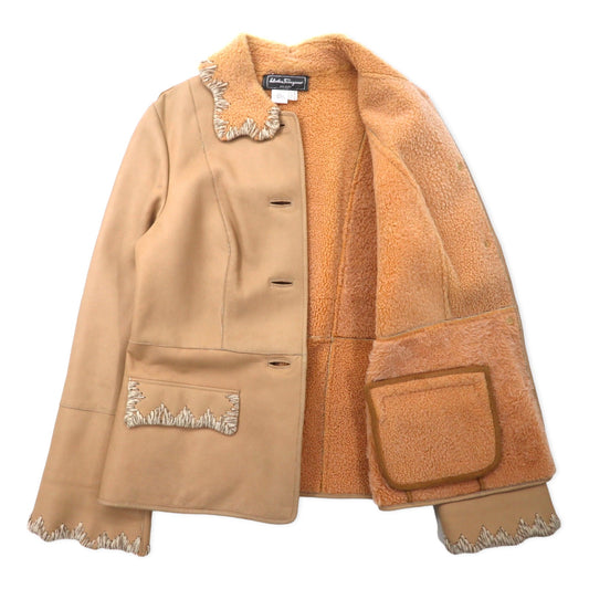 Salvatore Ferragamo イタリア製 ムートンジャケット 48 ベージュ レザー 刺繍 飾りボタン