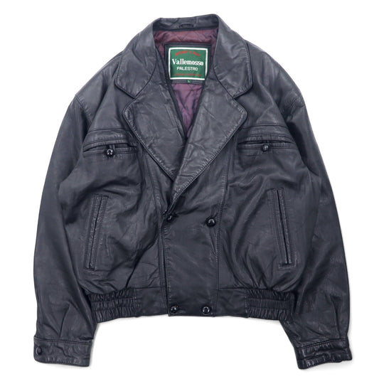 90年代 Vallemosso 襟ボア ショールカラー ダブル ムートン ジャケット L ブラック 羊革 ラムレザー キルティングライナー 襟着脱式