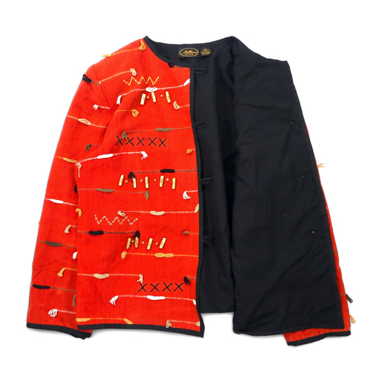 90年代 Allure BOUTIQUE レトロ デザイン刺繍 ノーカラージャケット L オレンジ コットン