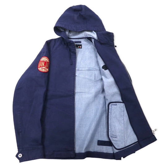 VAN -JAC- デニム フーデッド スウィングトップ M ブルー コットン 濃紺 ロゴ刺繍 ワッペン