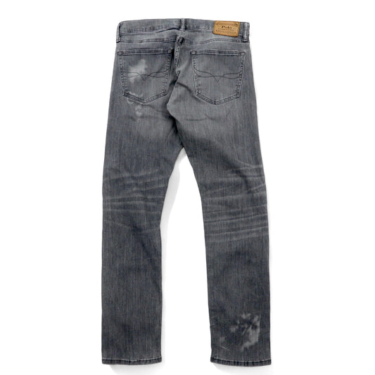 Polo RALPH LAUREN ダメージ加工 スキニージーンズ デニムパンツ 30 グレー コットン ストレッチ レザーパッチ ジッパーフライ トルコ製