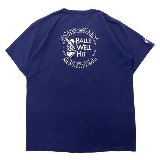USA製 RUSSELL ATHLETIC 80年代 ヘンリーネック Tシャツ XL ネイビー コットン バックプリント McCANN-ERICKSON MEN'S SOFTBALL